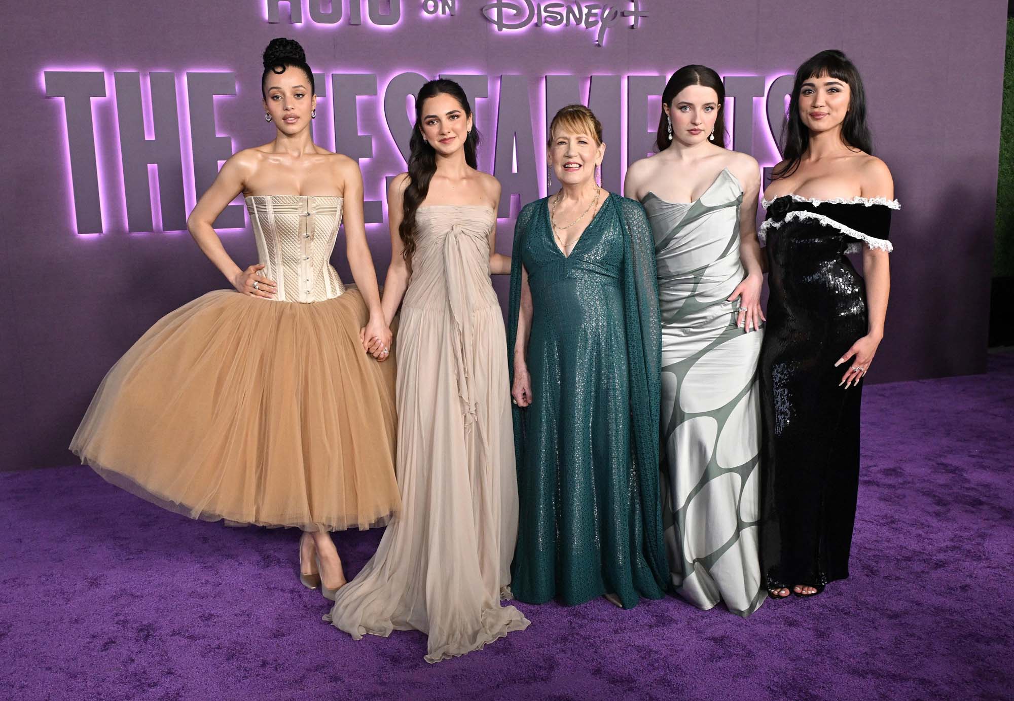 Chase Infiniti, Mattea Conforti, Ann Dowd, Lucy Halliday, Rowan Blanchard at Hulu's "The Testaments" Red Carpet Premiere held at the Academy Museum of Motion Pictures on March 31, 2026 in Los Angeles, California