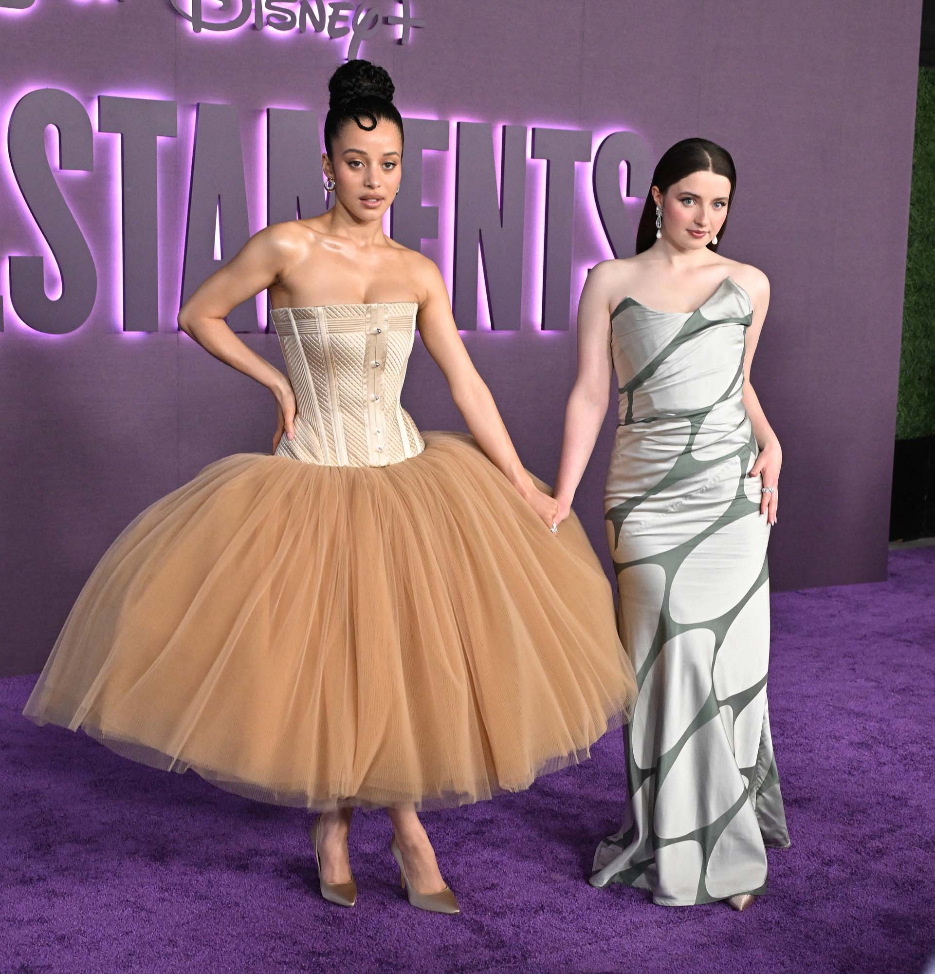 Her involvement now in The Testaments is a major boost to the series which also stars Ann Dowd who returns as Aunt Lydia and Lucy Halliday who plays Daisy. All of them were at the premiere in LA last night, where Chase continued her run of crazy amazing red carpet looks. She’s worn a lot of custom Louis Vuitton over the last few months, and here’s another. It is exquisite – not many people can make a tutu the colour of a manila envelope work but that’s Chase Infiniti.