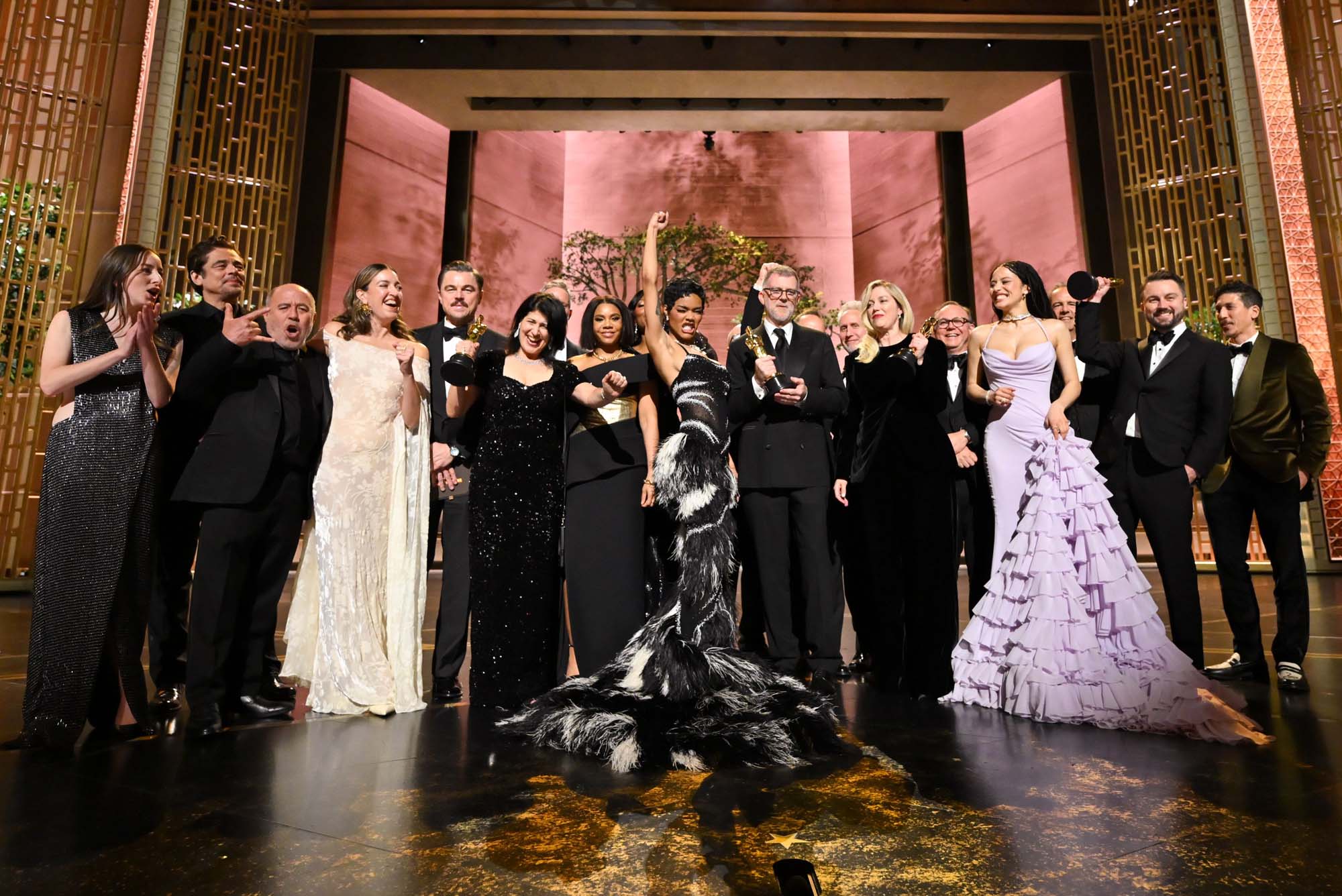 Chase Infinity and the cast and crew of Best Picture winner "One Battle After Another" at the 98th Oscars at Dolby Theatre on March 15, 2026 in Hollywood, California