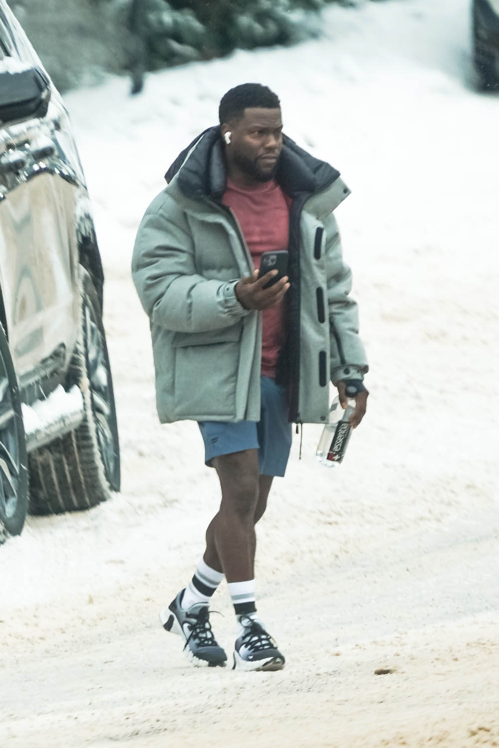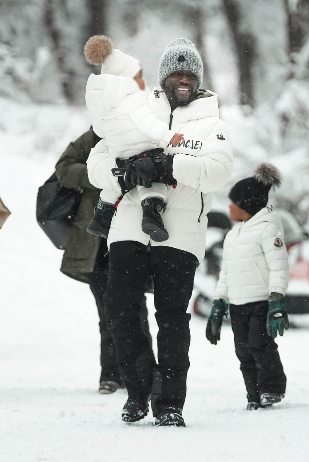 So with that in mind, as we enjoy this temporary decelerated pace, we’ll do a few quick photo posts of celebrities in their down time – let’s start in Aspen where Kevin Hart and his family spent Christmas.