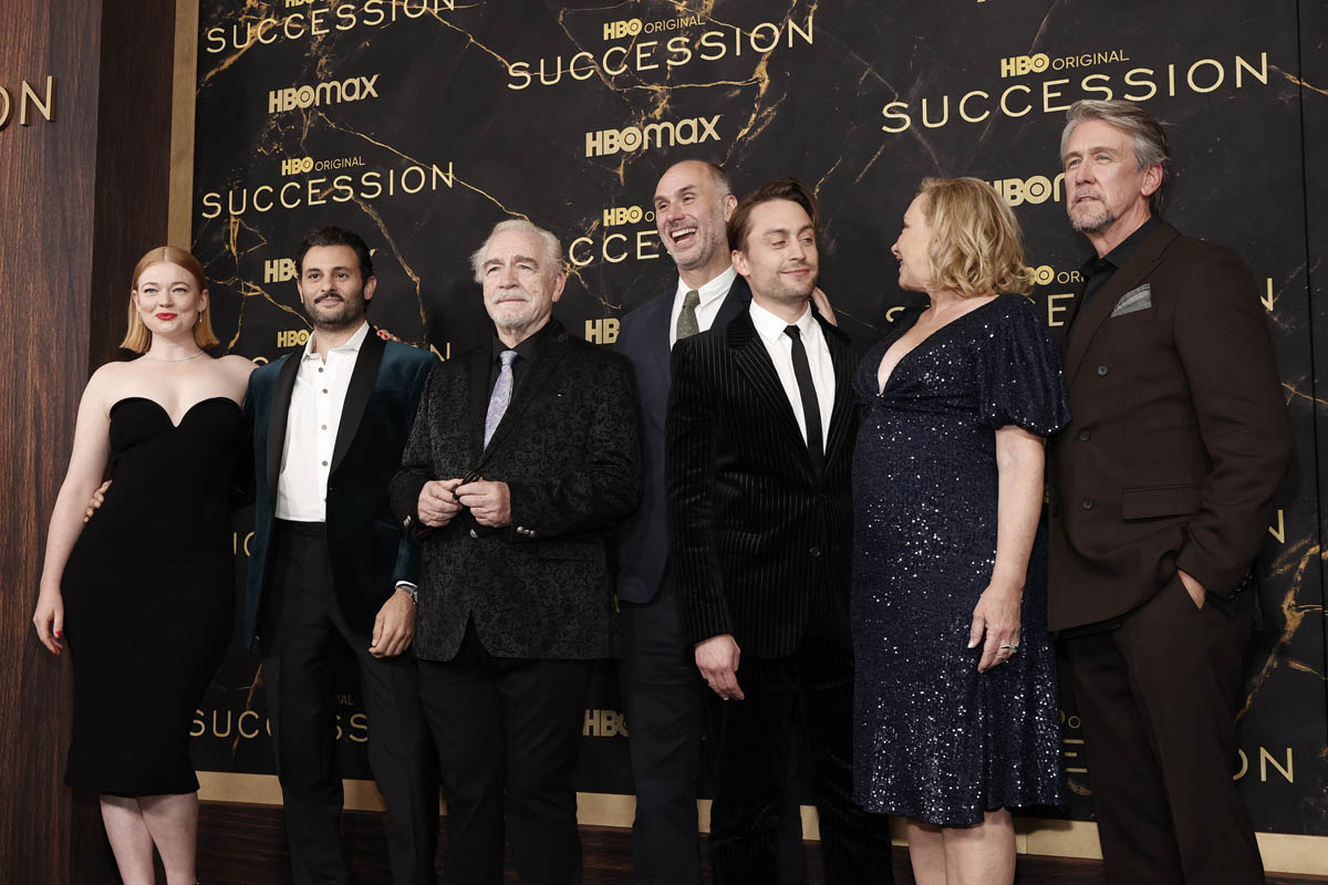 The cast has been doing press but really, not a lot of it for a show of this calibre. This could be because they don’t need to and the HBO publicists don’t want to overexpose them (smart) and it also could be because they are saving up some press, like Jeremy Strong (Kendall Roy), for after the finale. The cast, minus Jeremy, was on The Late Show with Stephen Colbert for a chat. I chalk it up to exhaustion and intensity. He is reportedly very focused at work (he spoke on the record to THR about Kieran with high praise) and removes himself from the cast to keep the estranged vibes going (although he is friends with Nick Braun/Cousin Greg, which works out considering the current plotline).