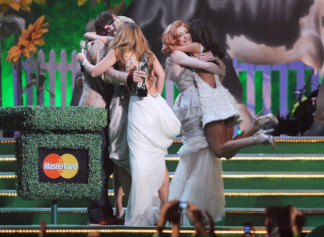 You all in the UK keep telling me: Cheryl Cole is it right now, and Girls Aloud won big last night, and even though in North American they haven’t quite connected, many people believe that Cheryl has the potential to cross over. She’s been to LA on a couple of exploratory trips the last few months… things look promising, and some predict there’s a possibility she might succeed with less time and less desperation than the Posh.