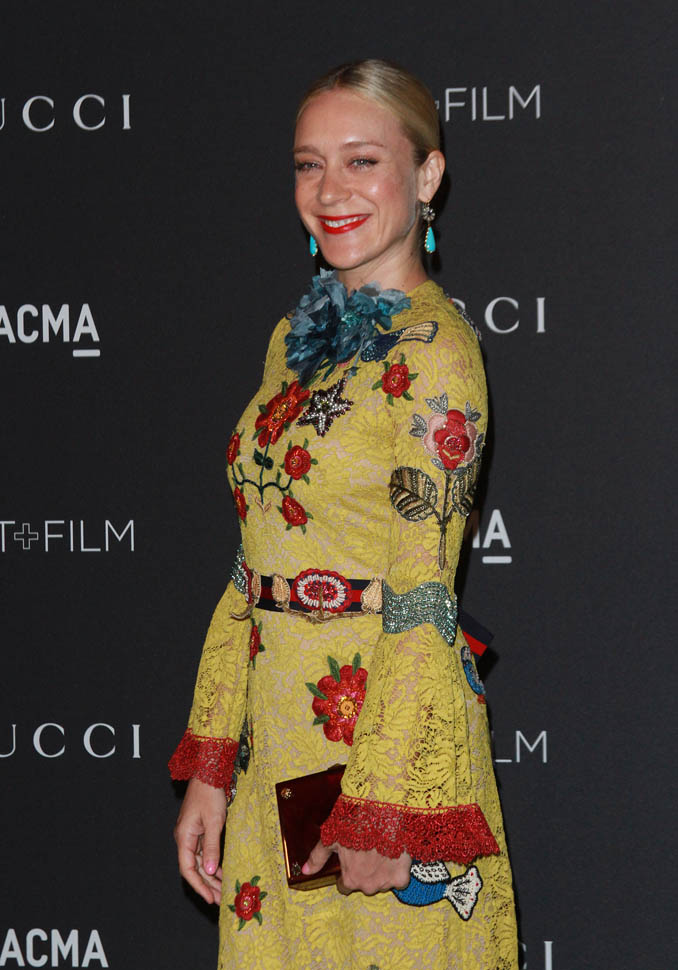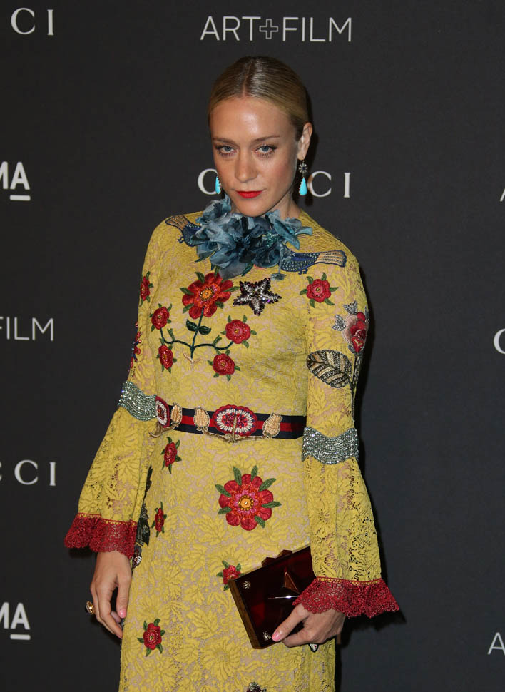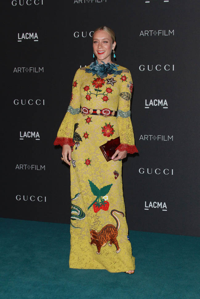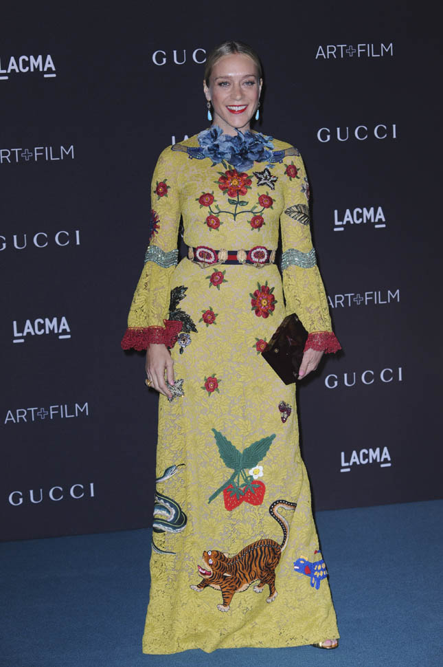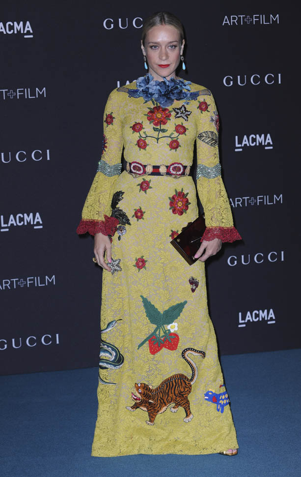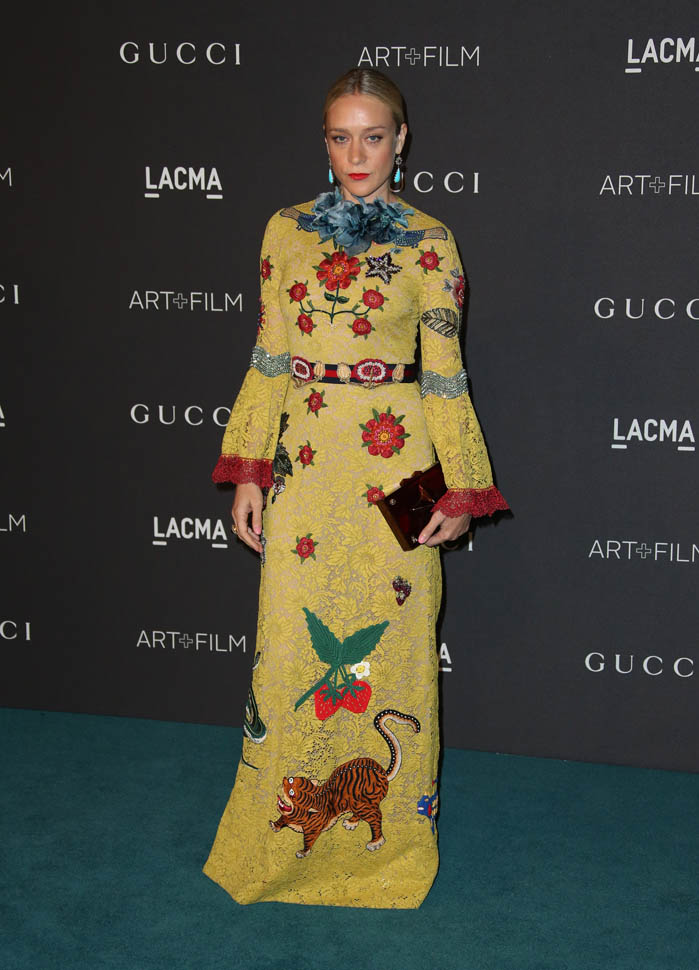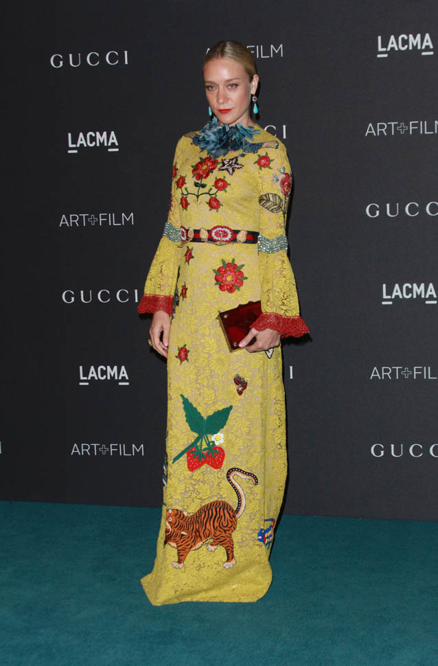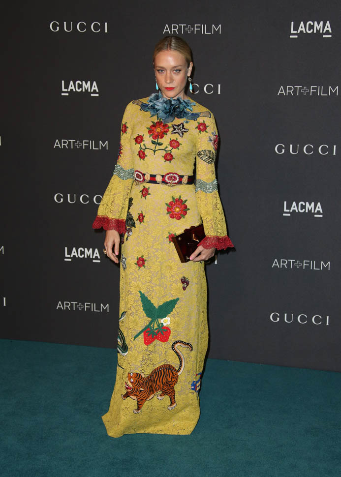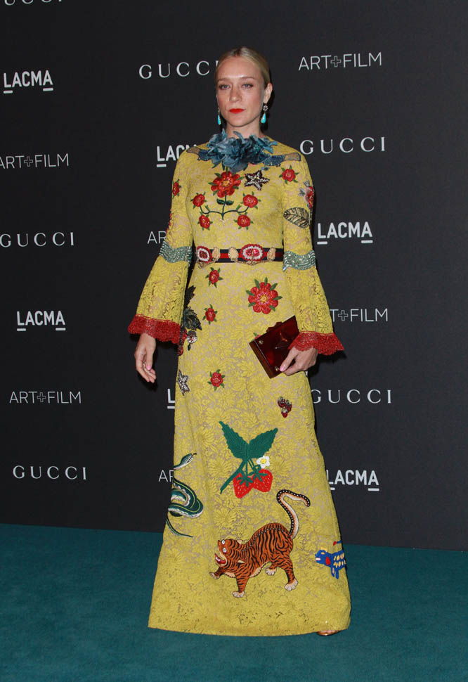 I love it because all these colours, the gold on main and the red coming in small hits, appeal to the Chinese in me. The high collar appeals to the anti-Kardashian in me. And as far as dresses go for that particular event, there is no way Chloe’s is worse than Salma Hayek’s – click here to see that.
