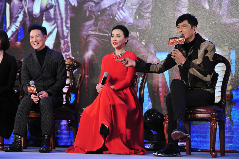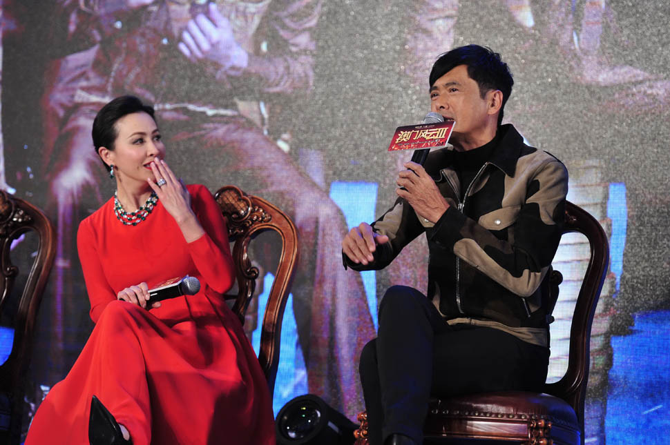 Chow Yun Fat, Carina Lau, and Jacky Cheung were all in Beijing today to promote The Man From Macau III. Click here for my previous post about the movie.