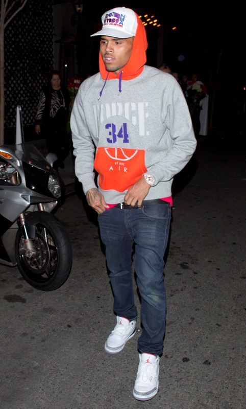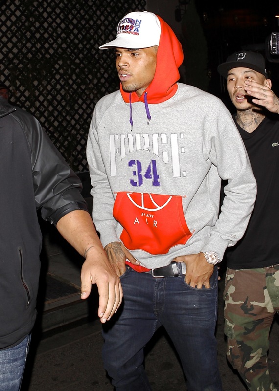Speaking of retirement, here’s Chris Brown leaving a club in Hollywood last night at 2am.