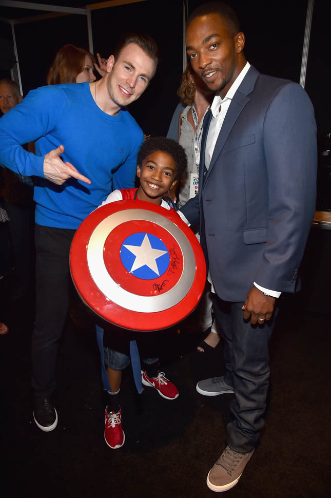 Disney’s in-house fan convention, D23, was this past weekend, and after skipping out on Comic-Con, Marvel showed up with both barrels loaded. After a video message from Benedict Cumberbatch and a teaser for Dr. Strange unveiling some psychedelic concept art, Marvel chief Kevin Feige moved right along to his other 2016 release, Captain America: Civil War (worry not, Cumbercookies, Dr. Strange will undoubtedly get a big push at Comic-Con next year). D23 moves a lot faster than Comic-Con, so the Civil War presentation was basically just Feige introducing Anthony Mackie, who introduced Chris Evans, who kissed Mouse-ass for a couple minutes before rolling footage. Check out their intro and the HUGE reception Evans gets:
