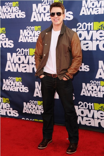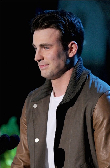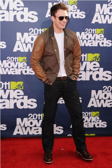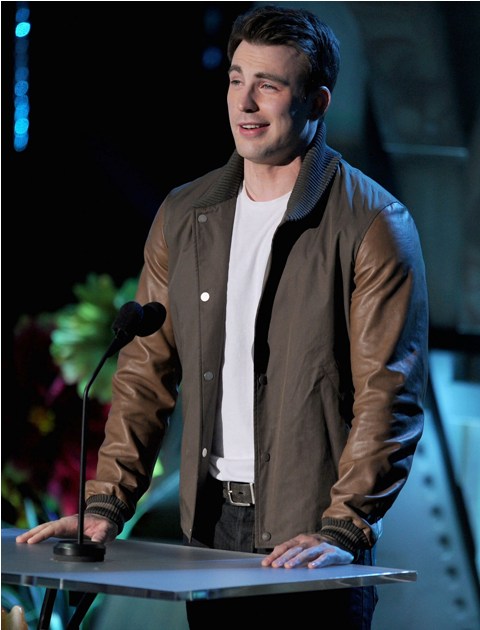 I don’t have quivery feelings for Chris Evans to begin with. And what he brought last night...well... it didn’t help. Last night at the MTV Movie Awards it went from indifferent, at best, to mildly repulsed, also at best. It might be that varsity jacket, or whatever it is he’s wearing that looks like a varsity jacket, in the colour of baseball glove, only the knobbiest-looking sh-t I’ve seen on a boyman in a long, long time.
