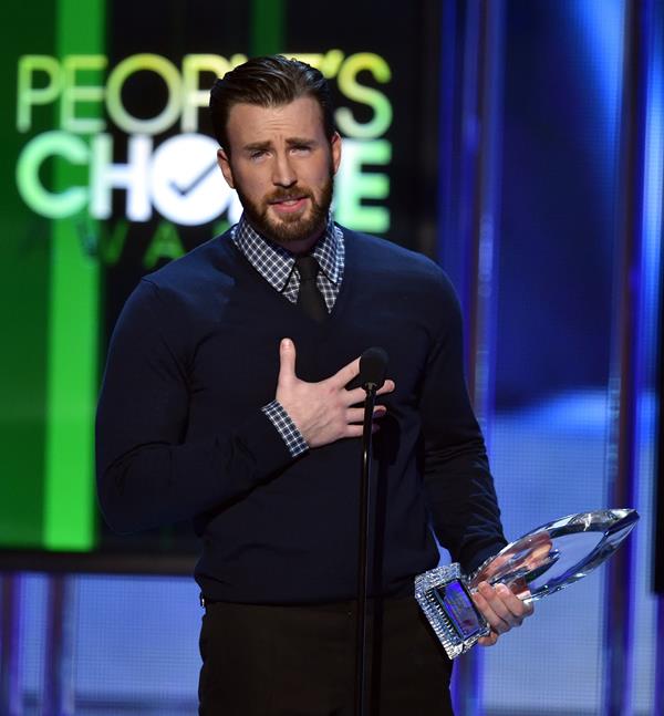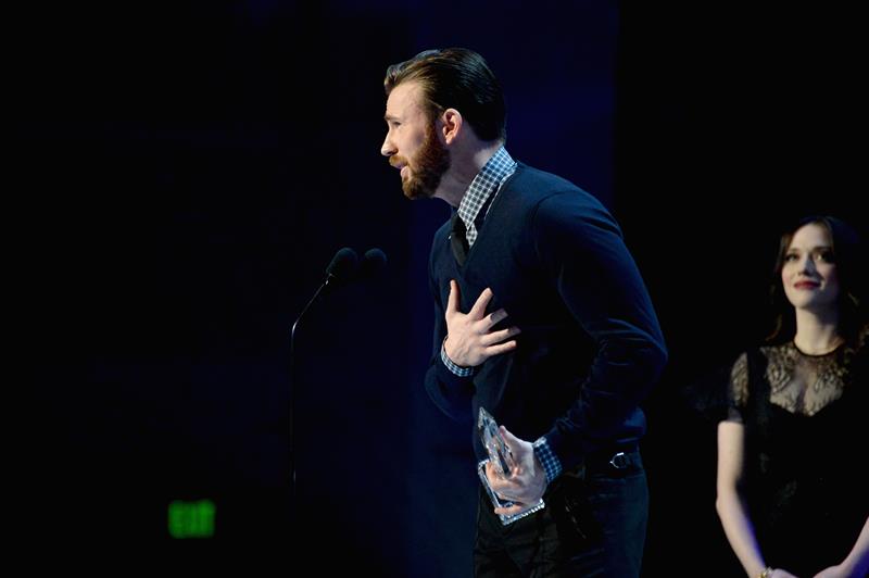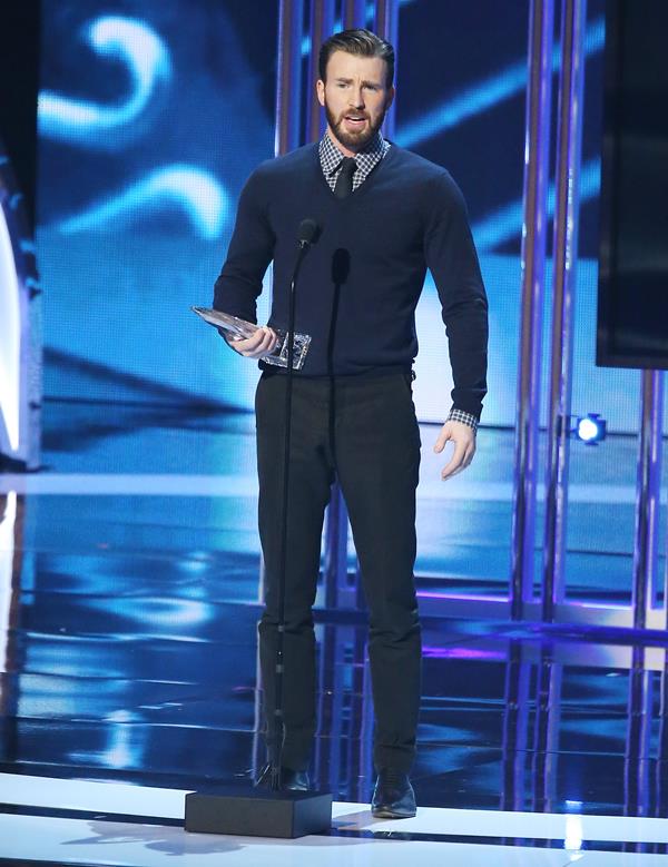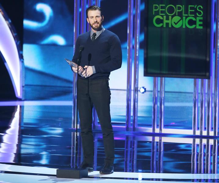 Action movie star, that is. The People’s Choice Awards, arguably the most meaningless of award shows, was last night and Chris Evans walked away with one of those dildo-looking trophies for being everyone’s favorite action star. He attended the awards dressed like that hot substitute teacher you fantasized about in high school (every school has one), and then he won the internet for the night by helping Betty White up to the stage.