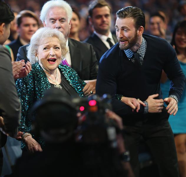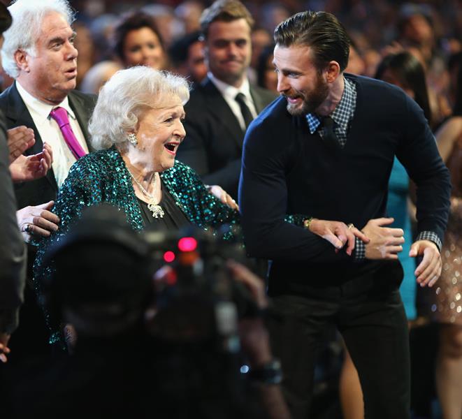Chris Evans helping Betty White up the stairs at the #PeoplesChoiceAwards is EVERYTHING: https://t.co/lLQrLuzmC8 pic.twitter.com/Gkkuoj27Dh— E! Online (@eonline) January 8, 2015