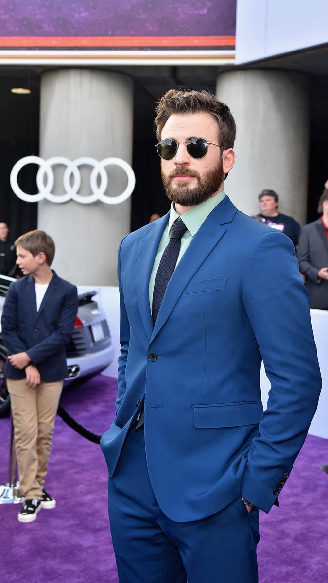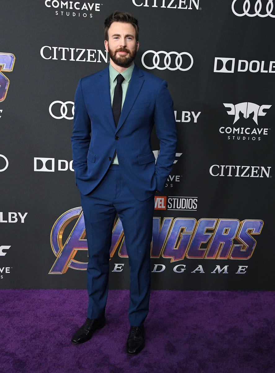 Anyway, as Sarah just observed in the previous post about Brie Larson and Chris Hemsworth, the purple carpet seems to have inspired many of our faves – which do not include Thanos – to bring out the colour in their wardrobes. Chris Evans, in particular, has been showing us some great steeze lately. Those velvet pants were a standout. He was in a rusty red suit in Shanghai last week.