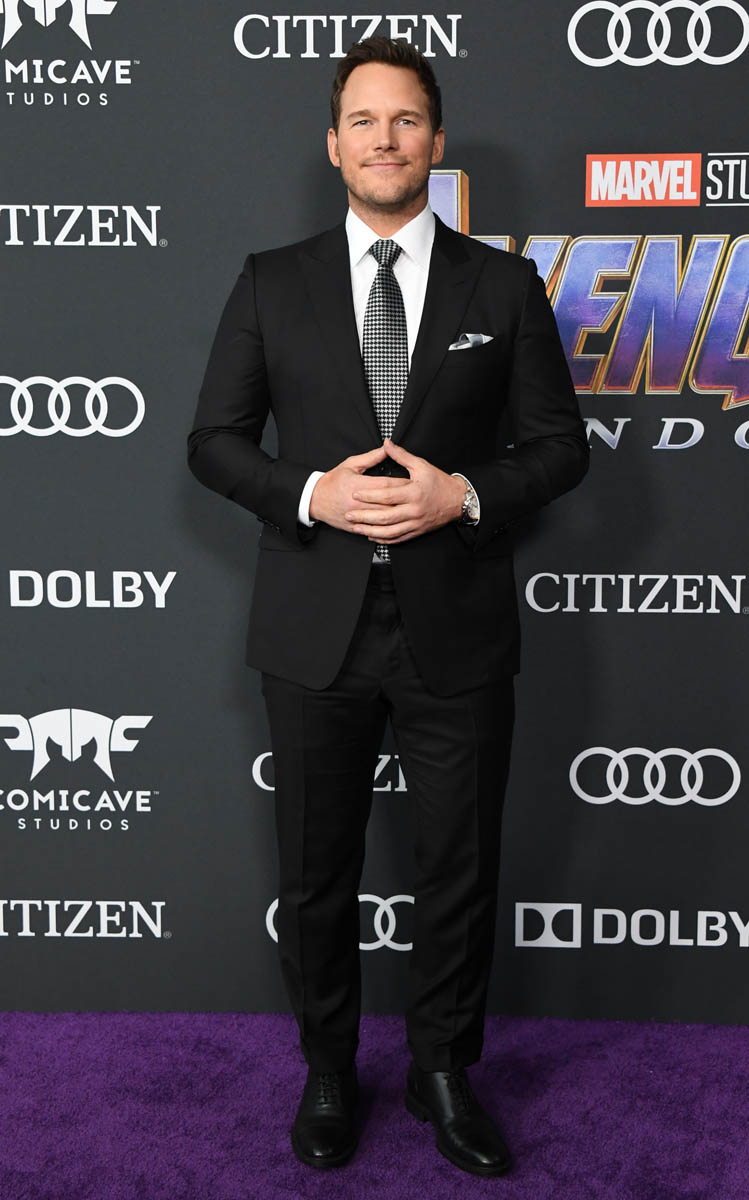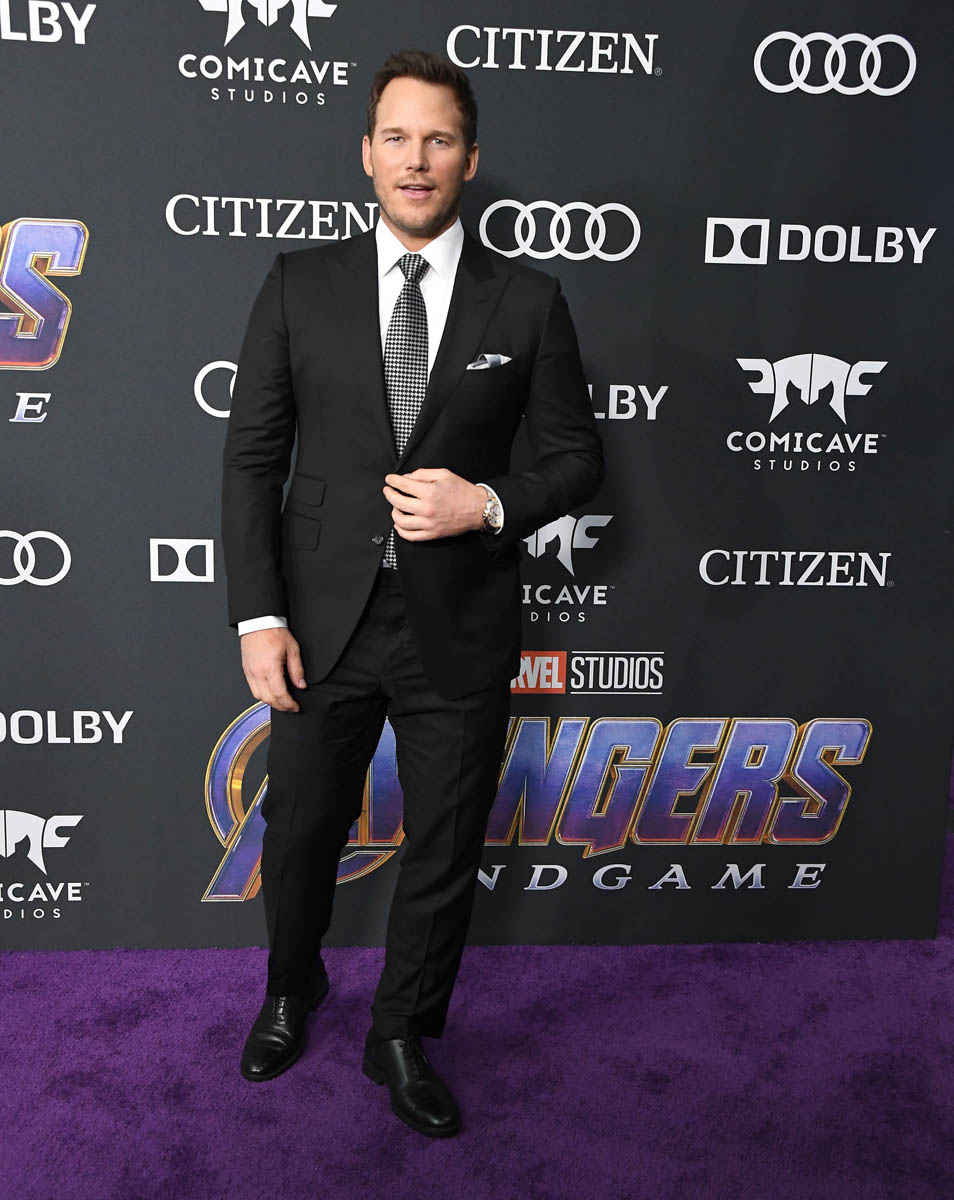 Last night he wore a blue suit with a mint green shirt underneath that I’m not mad at, only I wish there’d been more imagination with his tie. A patterned tie would have worked really well here. That may have been a step too far for him. He’s no Hemsworth, not yet. But he is farther along than Chris Pratt, who walked his first red carpet with fiancée Katherine Schwarzenegger as a “special guest from the Marvel Cinematic Universe” since we don’t know, yet, if Quill is coming back (of course he’s coming back, James Gunn is coming back). Pratt is the weakest Chris here with the wardrobe. That tie belongs on a mafia lawyer.
