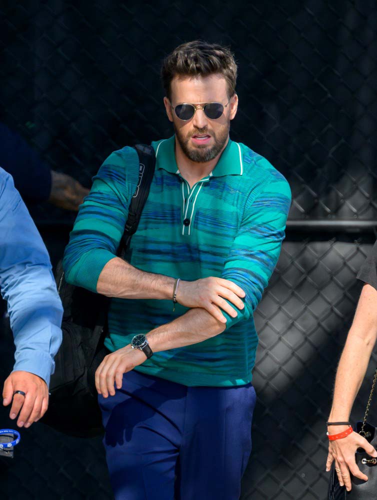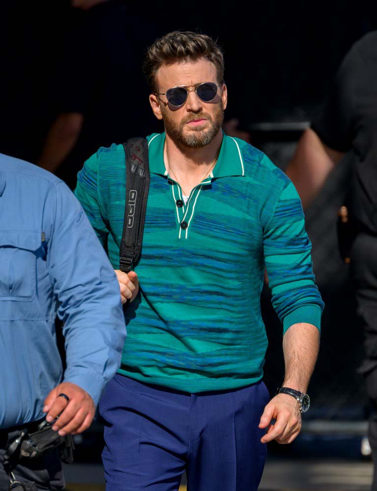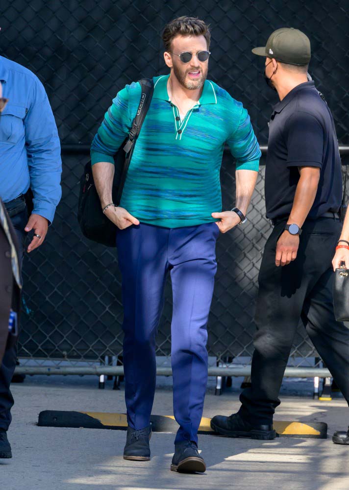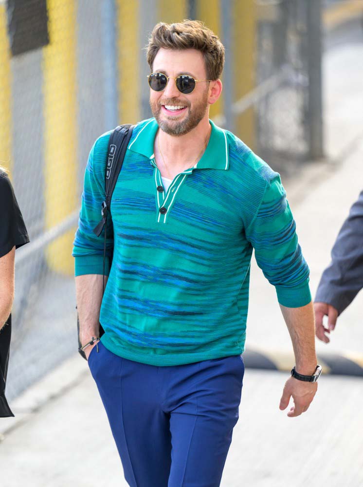 So much better than a standard suit situation that movie star men typically work on a red carpet, right? But we’ve seen Chris flexing a lot more style personality over the last couple of years. I also really liked the Missoni fit he wore to Jimmy Kimmel Live! earlier this week: