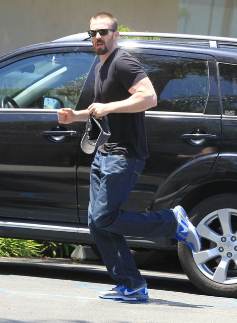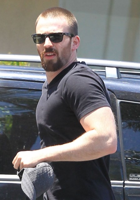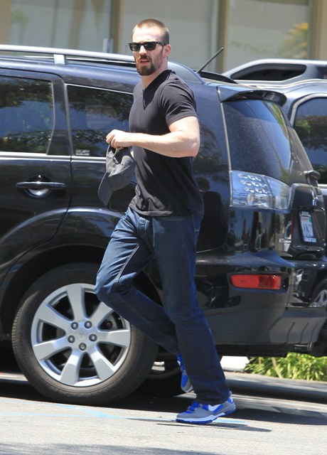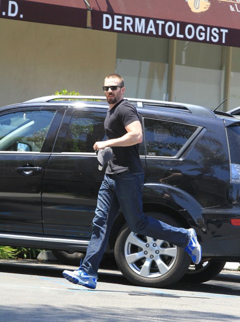 Chris Evans isn’t papped very often. Enjoy these then while I work on a longer post that will cover this in a few minutes. They were taken yesterday Studio City. Apparently he was running into a dermatology clinic.
