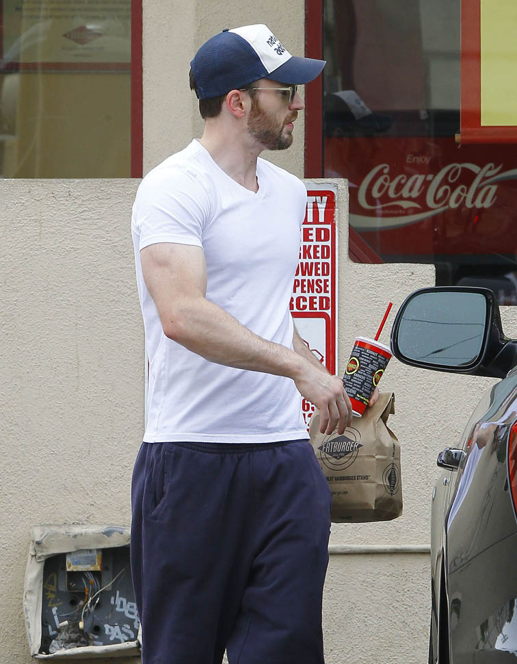 Chris Evans goes for a burger