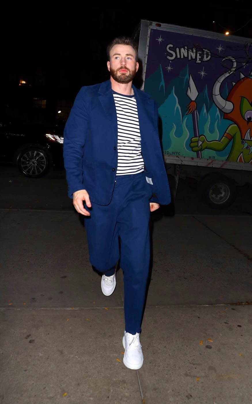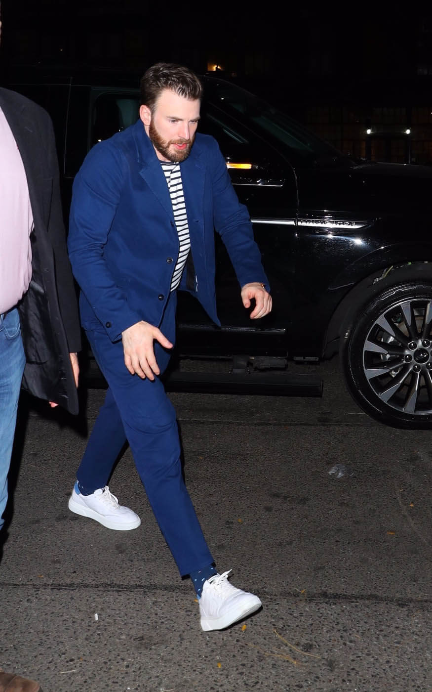 Knives Out, directed by Rian Johnson, due out on November 27th. I saw this at TIFF – and I LOVED it. Every minute. I can’t wait to see it again. It’s so smart, it’s really funny, it’s absurd, every single cast member is a delight. Including Chris Evans. As revealed in the trailers, Chris’s character is a dick. That’s all you need to know. If you haven’t seen the trailer yet, maybe don’t bother. Knives Out is a movie with secrets. It’s a murder mystery. So, once again, Chris Evans is promoting a movie where he probably can’t say much. He was just in a movie where he couldn’t say much – that would be Avengers: Endgame. Now that he’s on press tour for Knives Out then, he’s saying all the things he couldn’t say about Endgame.