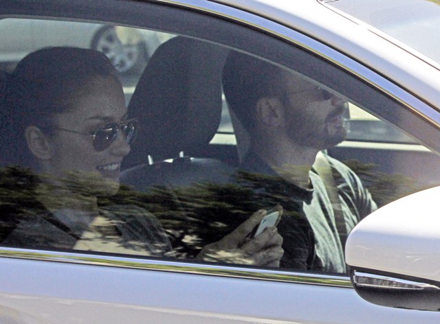 (Lainey: in real life Evans is current preoccupied with Minka Kelly. Celebitchy was the first to report that the two were back together in August. Here he is, dropping her and her dog off after a sleepover the other night.)