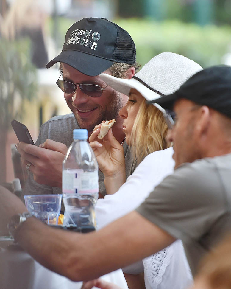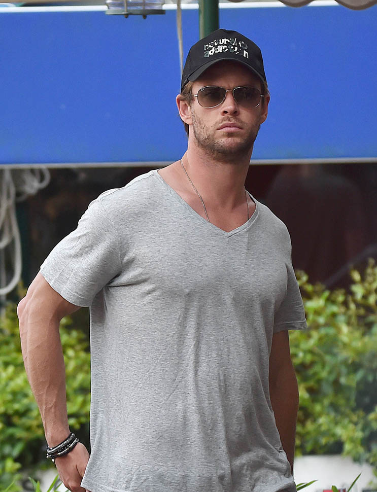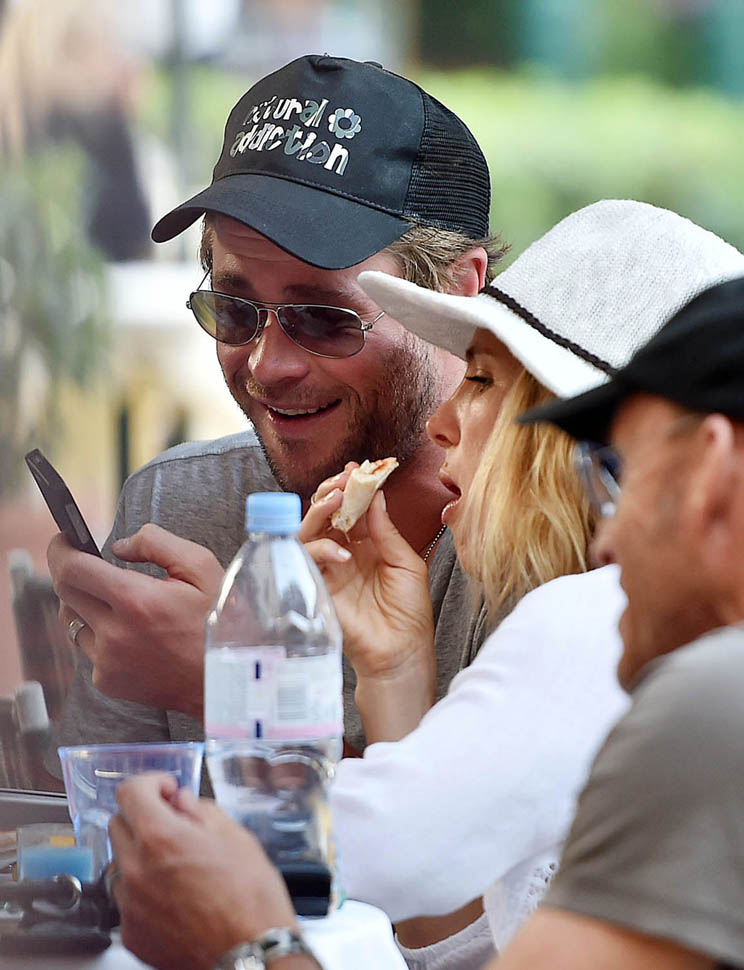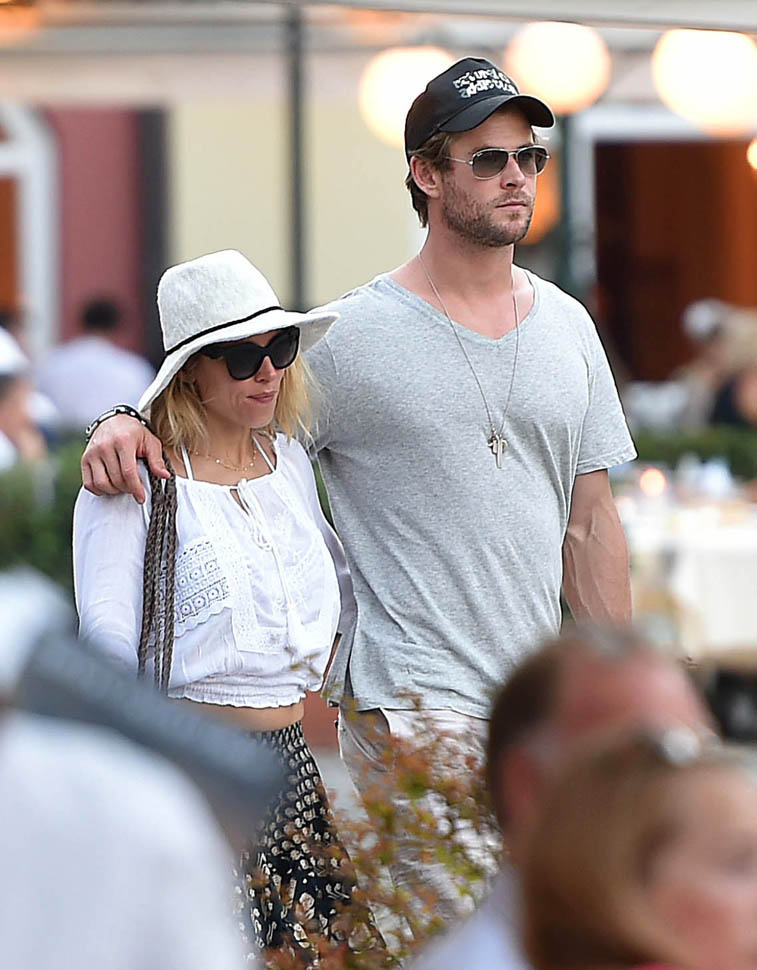 Mimi and Packer were just there too! As Maria pointed out recently, a lot of celebrities are heading to Italy this summer. Chris Hemsworth and Elsa Pataky are the latest. Here they are with friends and family in Portofino yesterday. Chris has been in London shooting The Huntsman. He’s supposed to move on next to the Ghostbusters movie, as the receptionist. Sarah liked his casting decision (click here for a refresher) and so do I. You too I think? Or is it because you’re just picturing him with his shirt off answering the phone?