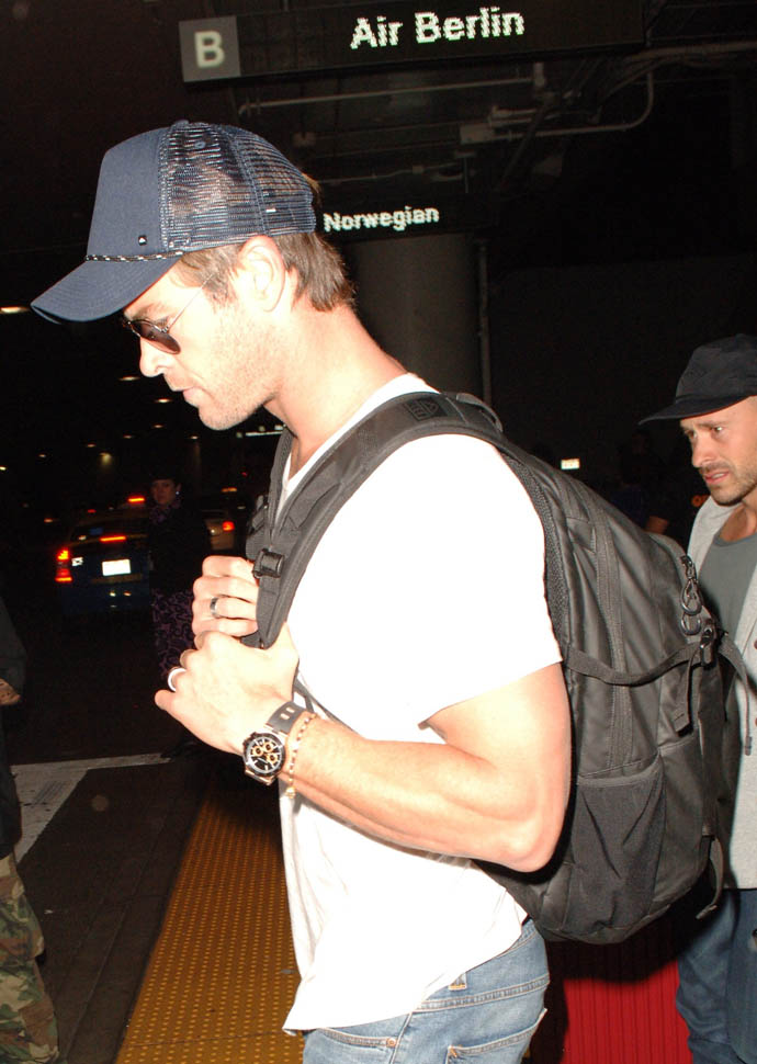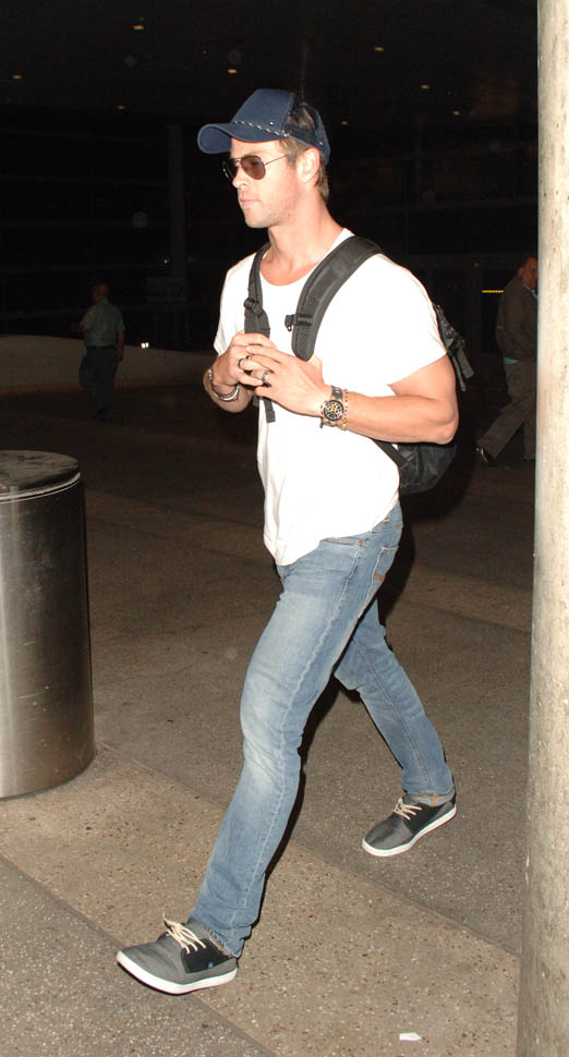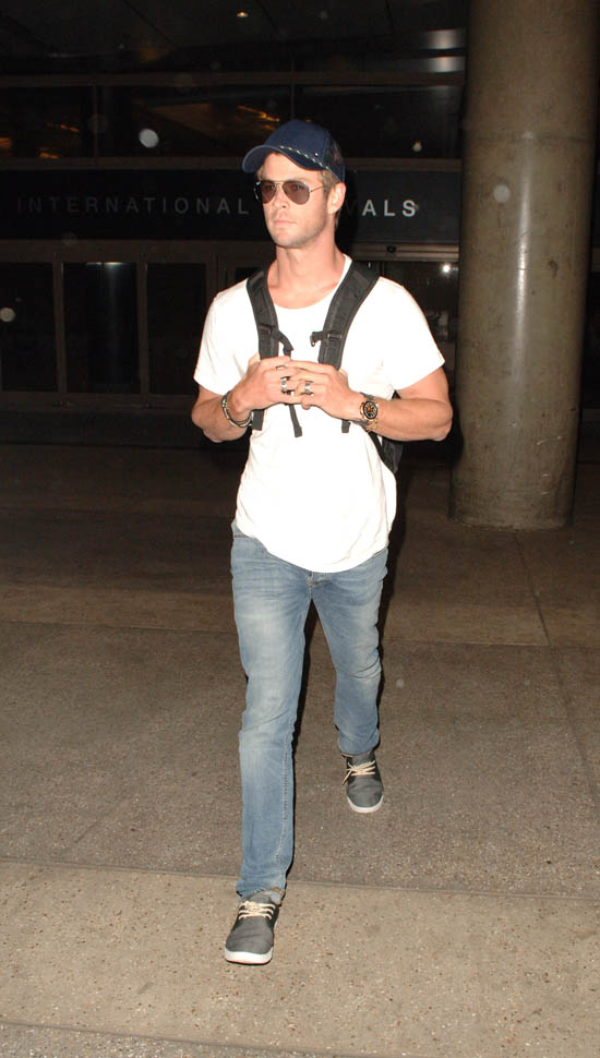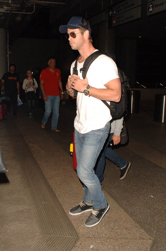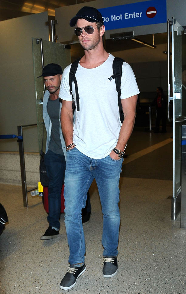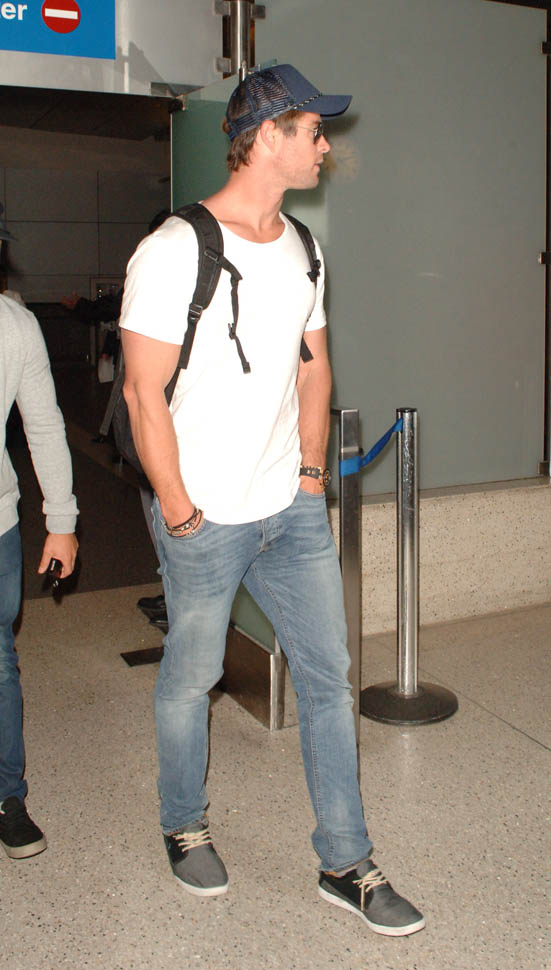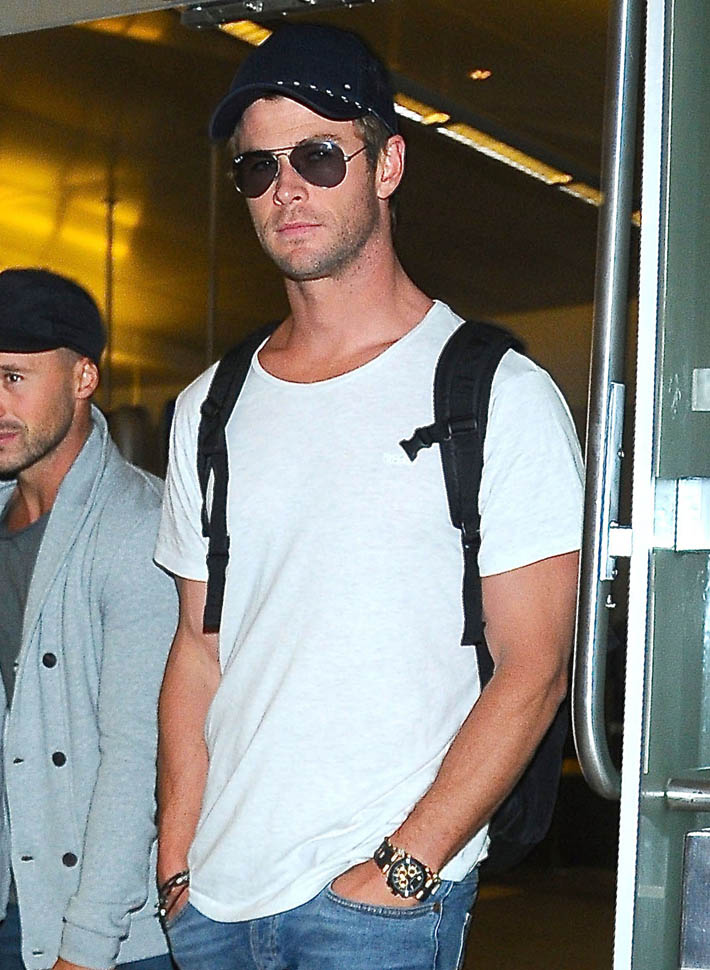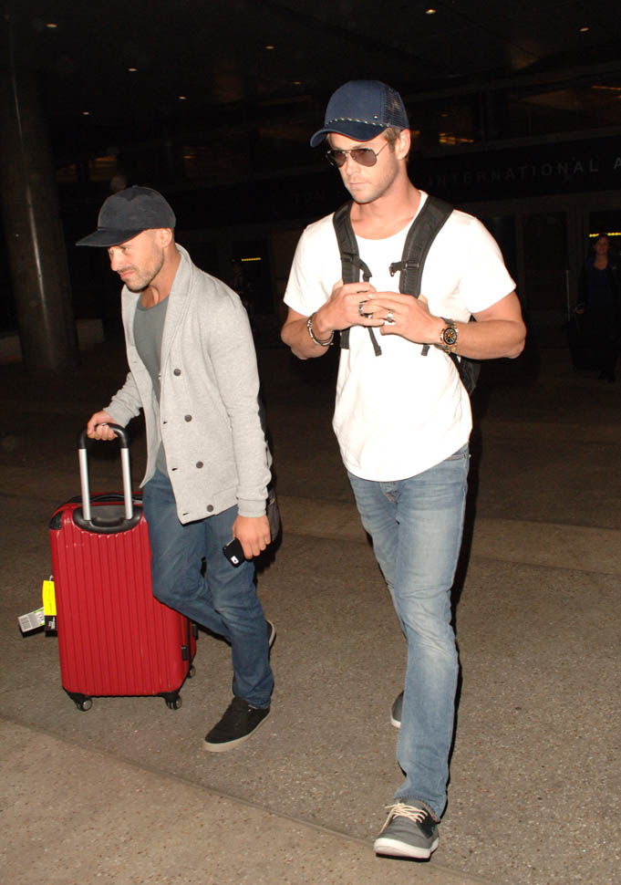 Chris Hemsworth arrived at LAX yesterday. The reason: the Avengers: Age Of Ultron junket is this weekend. And that leads right into the Hollywood premiere on Monday. All of them are expected. And they’re all supposedly going to be on Good Morning America and Jimmy Kimmel Live in the next week. Marvel wants to break its own record. Ultron is tracking well in pre-sales; they’re marketing the sh-t out of this to attract people who might not otherwise go out and see it on opening weekend. Because the goal is to get over $200 million.