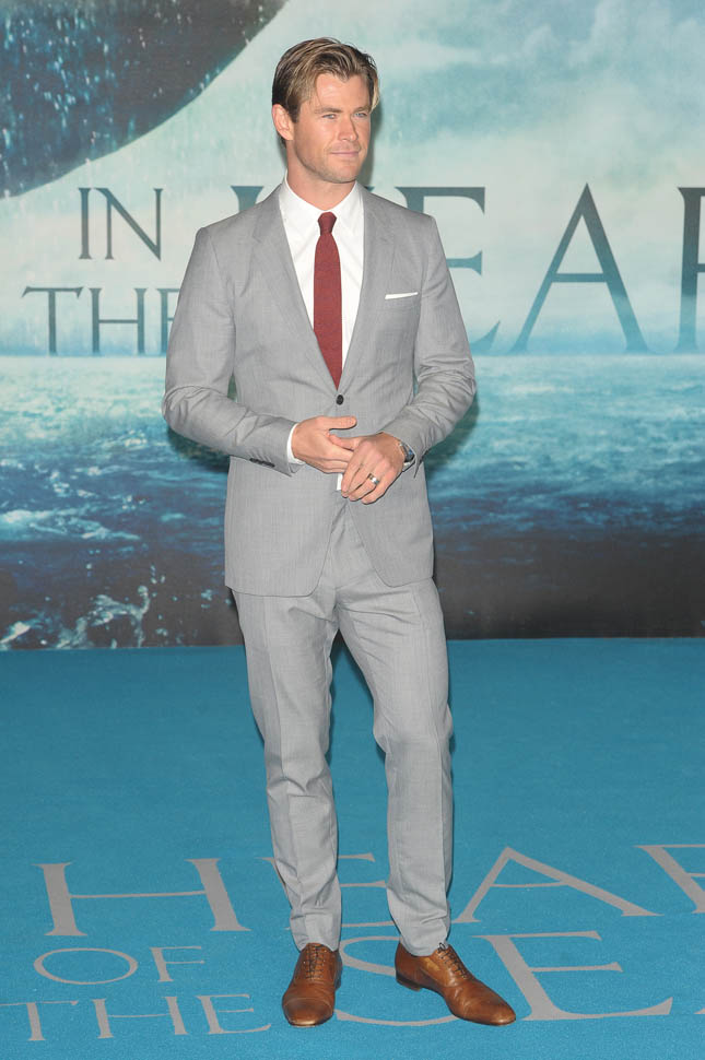 Check out Chris Hemsworth at the premiere of In The Heart Of The Sea last night in London. This film was supposed to be released earlier but they thought it'd be better for the holiday box office. And maybe some awards?