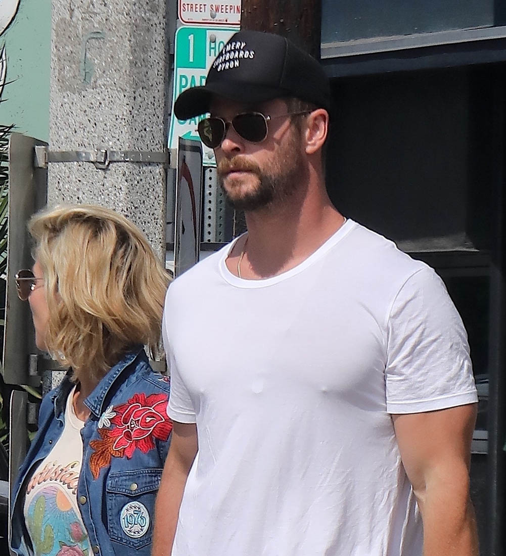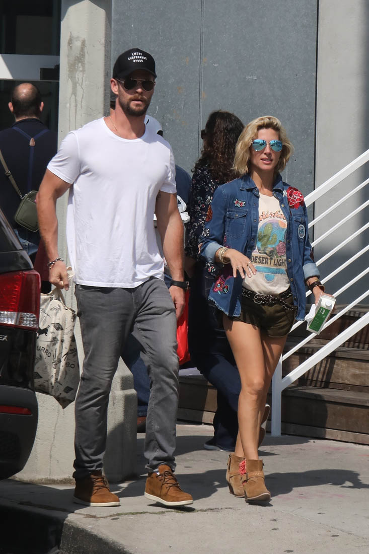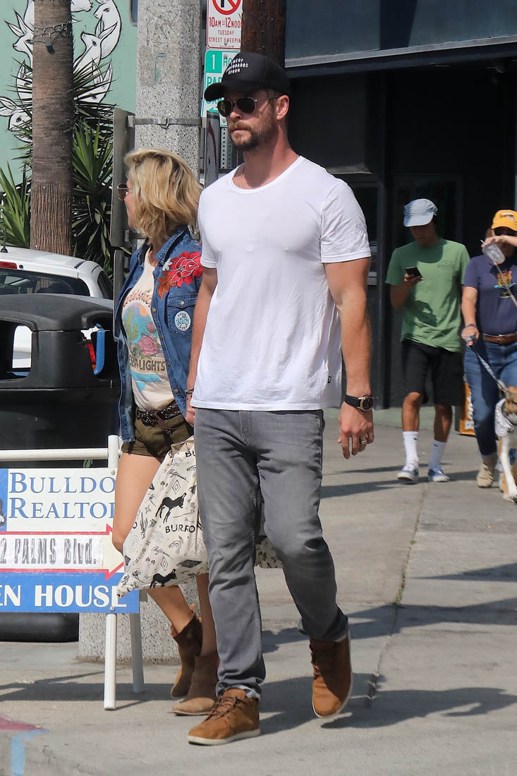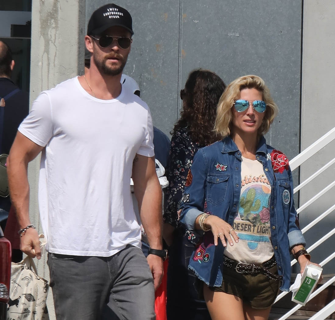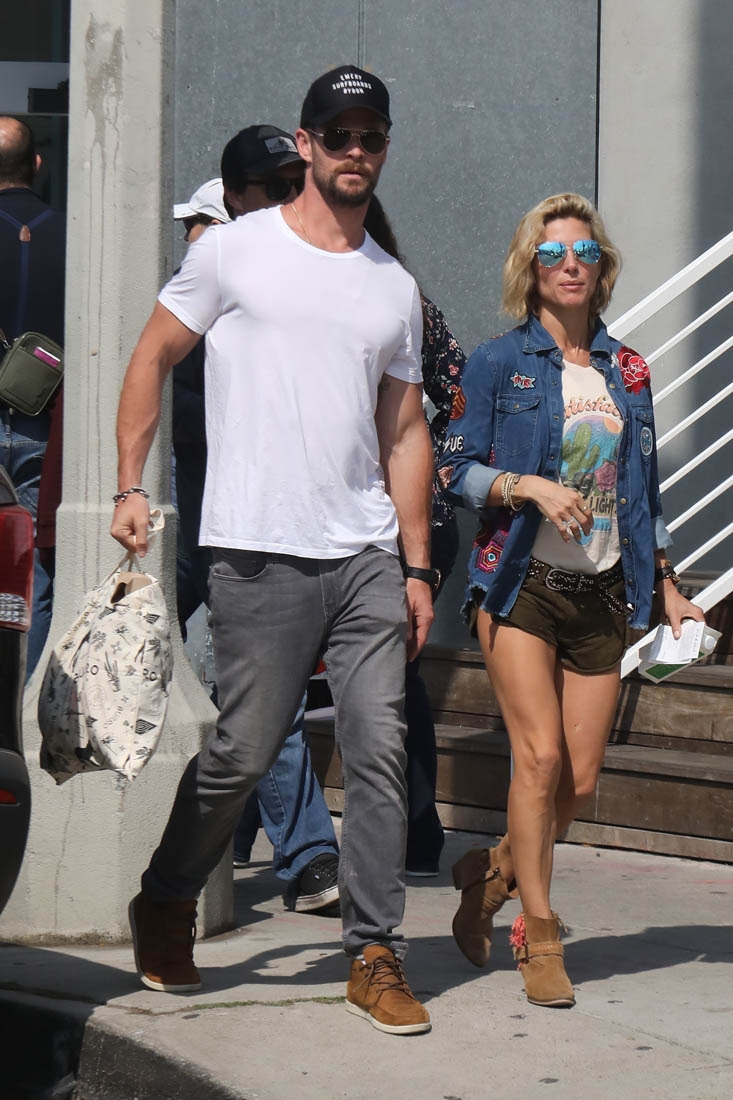 Here’s Chris with Elsa Pataky in Venice Beach yesterday and at LAX later in the evening. You think he’ll be back to host SNL for the third time again around the time Thor opens?