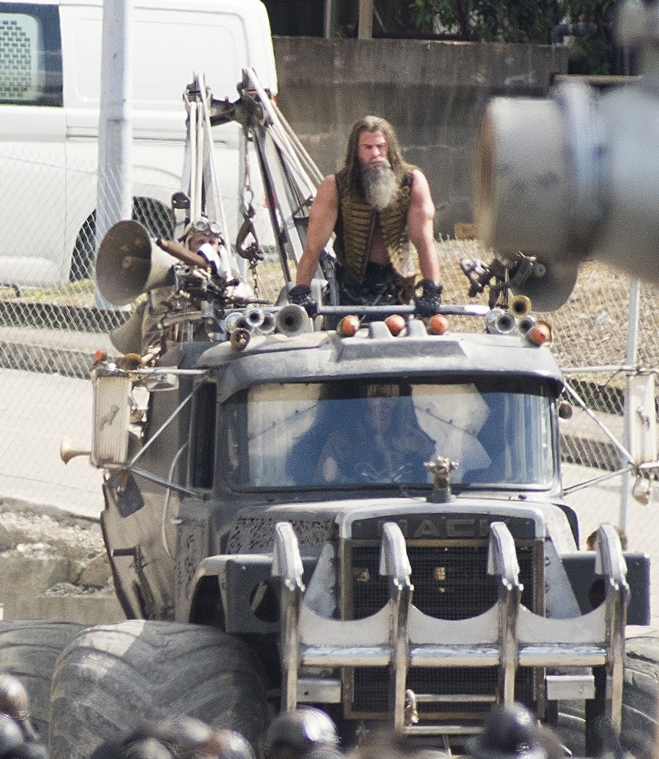 WITNESS HIM! Chris Hemsworth is on the set of Furiosa, the Mad Max: Fury Road prequel centered on Charlize Theron’s character, Imperator Furiosa, that instead stars Anya Taylor-Joy as the young Furiosa. Hemsworth is sporting a big gray beard and dirty long hair, and honestly, I mostly recognized him by his biceps. He is pretty well buried under that look. He is playing the war lord Dementus, the man who kidnaps Furiosa from the Green Place. The only other plot details revealed so far is that Dementus, with Furiosa in tow, will encounter a young Immortan Joe, and the action of the movie is the two tyrants battling it out in what will undoubtedly be a series of rad action sequences. No idea who is playing Immortan Joe, though, as the original actor, Hugh Keays-Byrne, passed away in 2020 (he also played Toecutter in Mad Max).