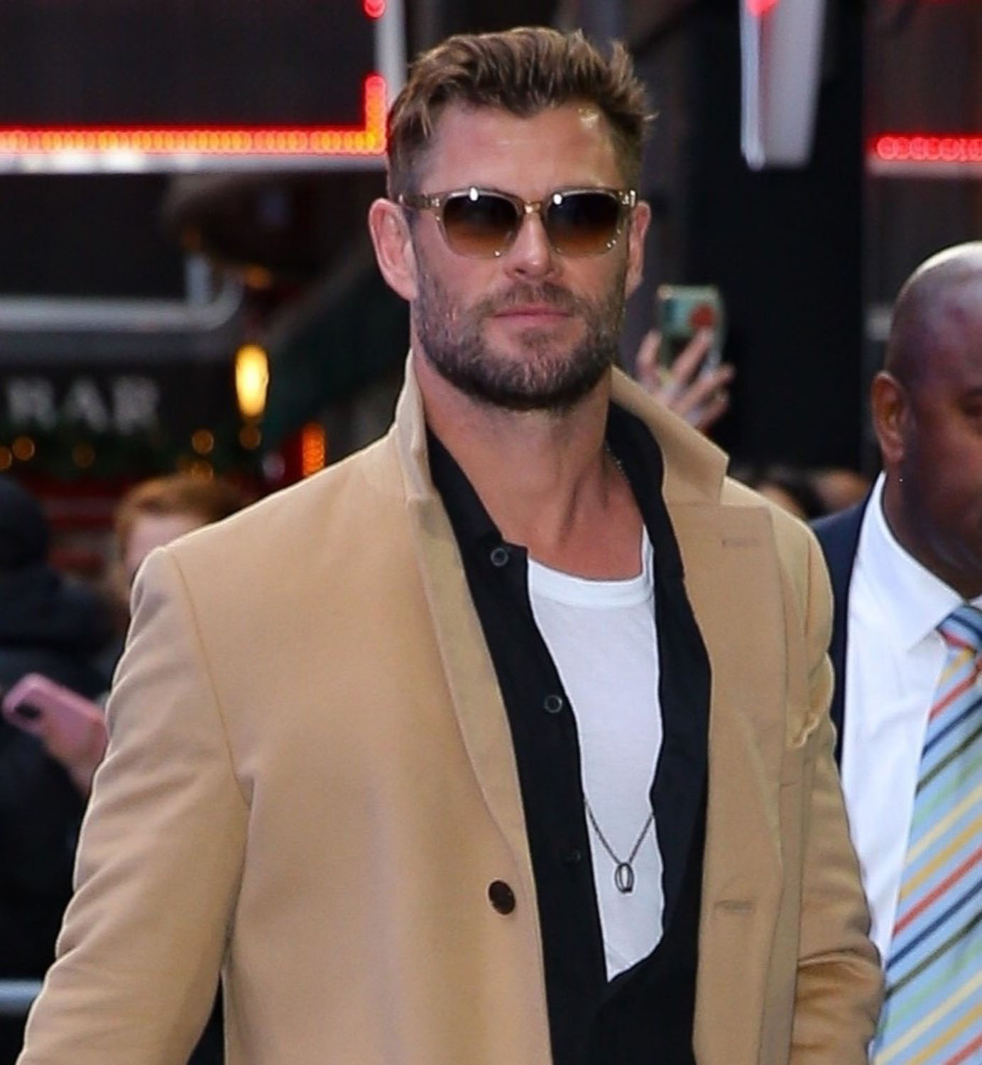 Let’s go back to Hemsworth’s sexiness though because I prefer him with more clothes on than off and he is wearing the sh-t out of this coat with the collar flipped up, as it should be, and those sunglasses are a good match and the hair is on point and yes, it is stupid how attractive he is. Like he literally just materialised out of imagination.