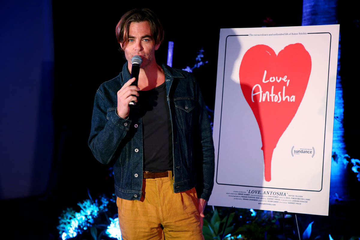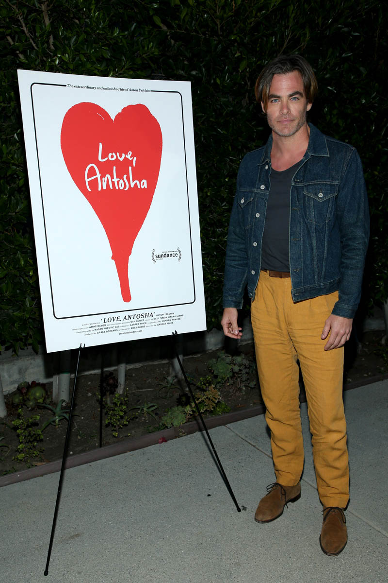 For those of you who are into another Chris, as in Pine, here he is, still wearing his 90s Titanic hair, remembering Anton Yelchin the other night at a Star Trek anniversary event that also featured the trailer premiere of the Love, Antosha. The documentary of the late actor features appearances by Kristen Stewart, Willem Dafoe, JJ Abrams, and more – and Chris Pine too. They worked together on Star Trek, of course, and of their relationship and the film, Chris said that night that: