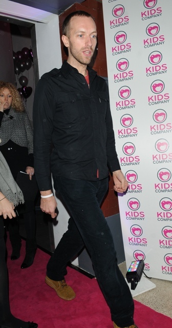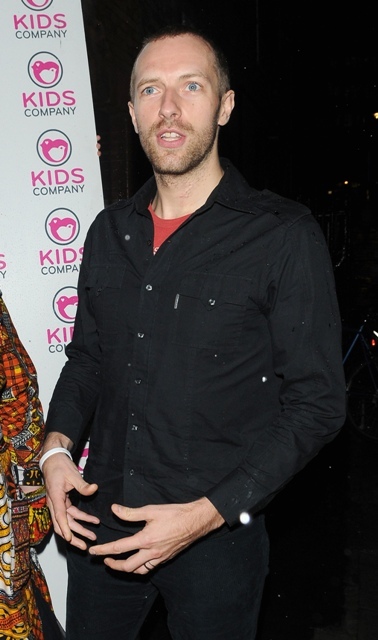 This is Chris Martin last night in London at a designer fashion sale for charity. Coldplay is not touring again until next February. Spending time at home tending to the renovations perhaps.