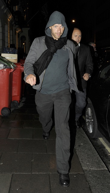 Anyway, Gwyneth’s husband Chris Martin, lead singer of Coldplay, of course, was also present though you wouldn’t know it from the photos taken inside the event. He declined. And then, when it was time to go, he left after she did, all hooded and grumpy, running from the paps only to meet up with his wife down the block around the corner, hopping in the car quickly so that they could avoid being shot together...