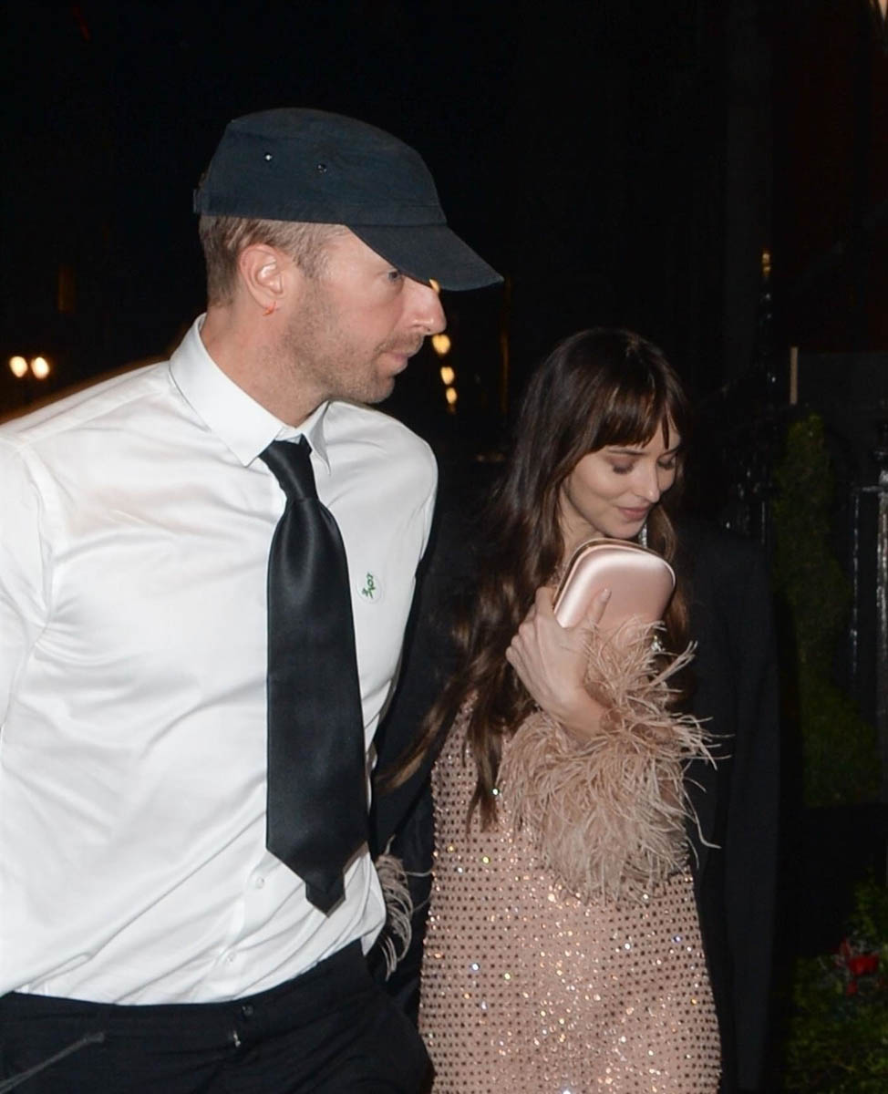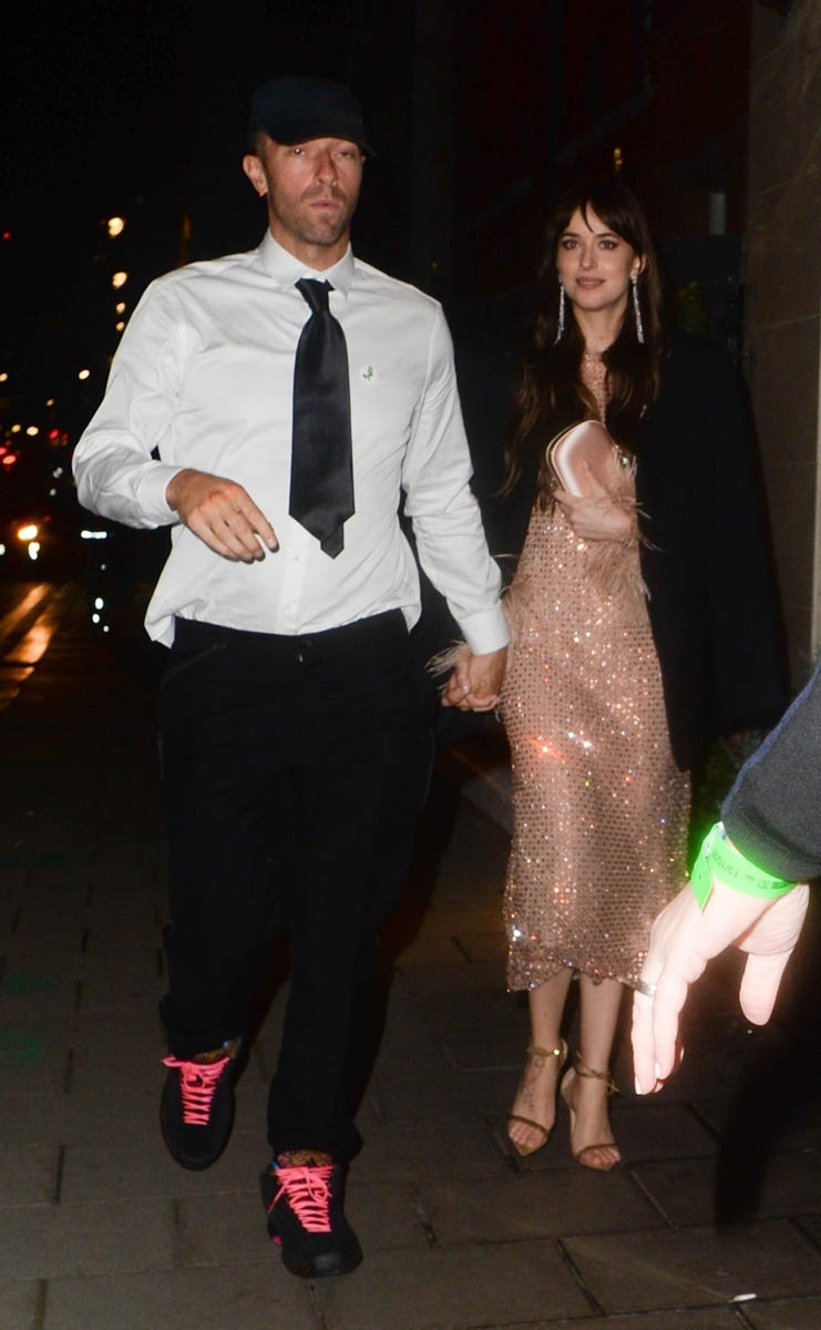 His “universe” Dakota Johnson’s schedule happened to align with Chris and the band because she was in London for the premiere of Maggie Gyllenhaal’s The Lost Daughter last night. They’ve now been together about four years and it’s been steady and solid between them, although every few months or so there’s either an engagement rumour, a pregnancy rumour, or a breakup rumour. Given her reaction to his public declaration, we’re due for an engagement rumour next.