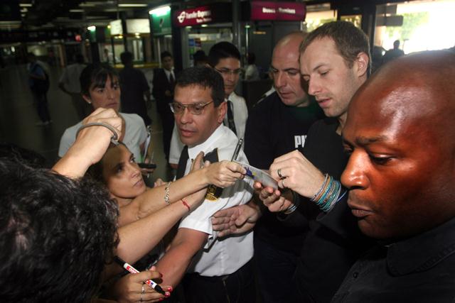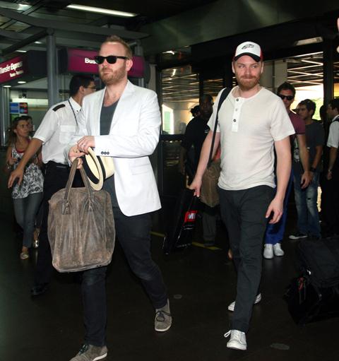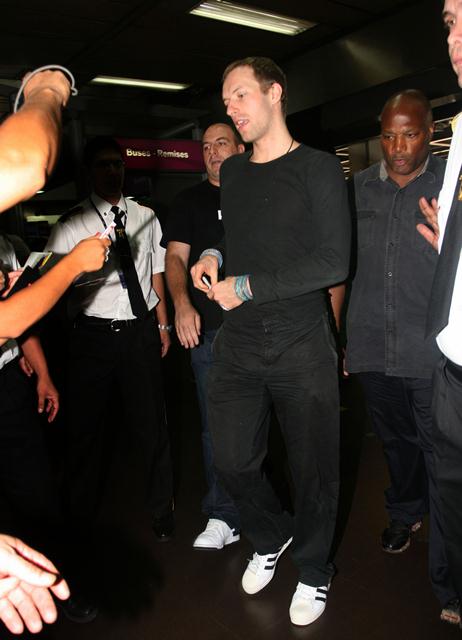This is Coldplay arriving in Buenos Aires, currently touring through South America. Guy Berryman is so hot. Prior to departing on this trip with the band however Chris Martin was with Gwyneth Paltrow and their children in Nashville where’s she’s been shooting Love Don’t Let Me Down. The couple was also spotted together in New York for a quick weekend away. Maybe she’s exhausted the organic barley supply in Tennessee.