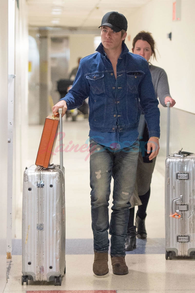 All you want is to look at him anyway so here he is arriving at JFK yesterday, presumably in advance of interviews and other press opportunities to promote I Am the Night premiering next week on TNT.