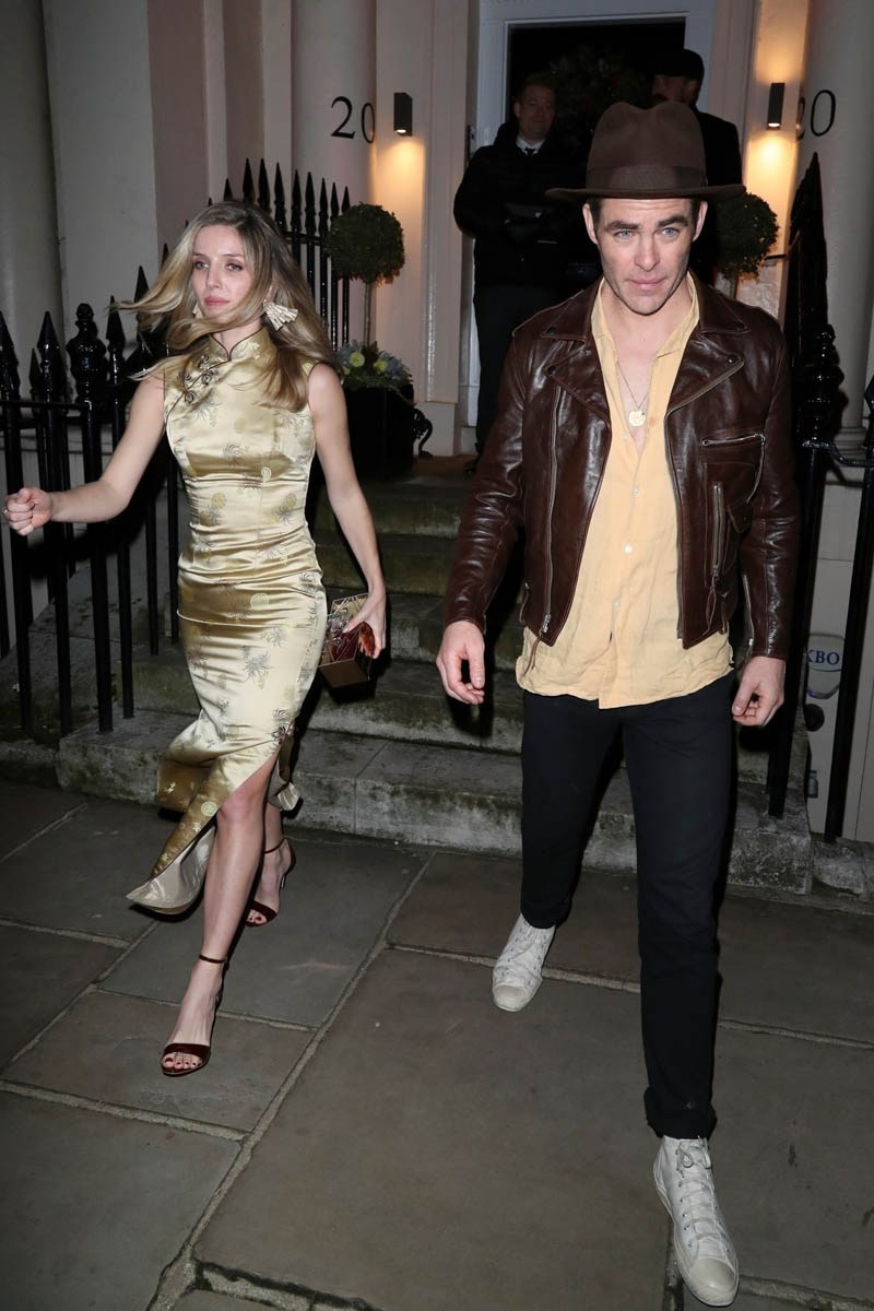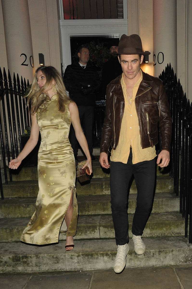 Chris Pine and Annabelle Wallis are still dating. As far as we know, they’ve been together officially since March. They started the ‘showing up to events in coordinating outfits’ phase of their relationship in July. Chris and Annabelle are still in that phase. Here they are in London leaving a Christmas party (Evgeny’s annual vodka and caviar party) once again in matching looks.