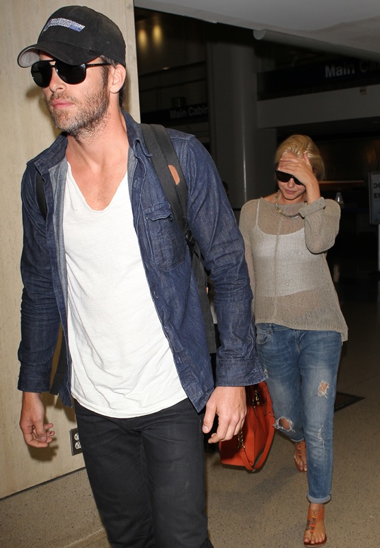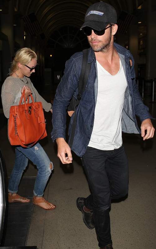 Jack Ryan: Shadow Recruit opens next week. It was originally supposed to be in theatres at Christmas but Paramount pushed it back, some say because Paramount made room for The Wolf Of Wall Street instead. Here’s Pine arriving at LAX yesterday with girlfriend Iris Bjork Johannesdottir. They seemed very into each other in Paris a couple of months ago – click here for a refresher. Pine, presumably, will be doing some promotion over the next week or so in advance of the release. Hopefully that means we’ll be seeing a lot of Keira Knightley since she plays his wife in the movie. I’ve attached a few clips from Shadow Recruit below. It seems kinda generic but for Keira and Kenneth Branagh which is why I think I might be into it. Then again, is that a good sign or a bad sign that it’s not the title character that’s drawing me but the people who surround him?