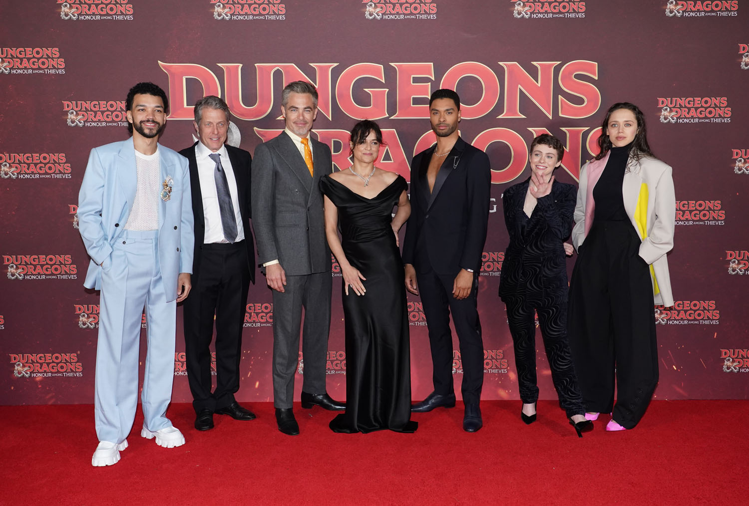 The Dungeons & Dragons: Honor Among Thieves press tour is underway, here’s Chris Pine and the rest of the cast at the London premiere last night. It defies logic how well Pine works that contrasting yellow tie/shirt combo, but then, standard fashion rules have never applied to Chris Pine. He can wear anything and make it look great. Does that make him the male Zendaya?