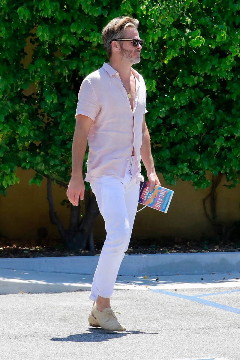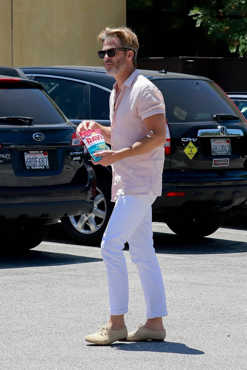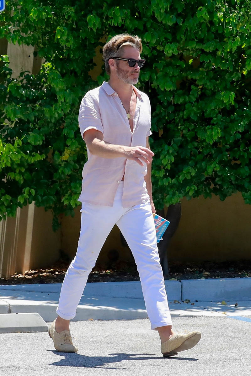 Here’s Chris Pine with Annabelle Wallis yesterday in LA in an outfit that’s pretty 80s too – pink shirt, white chinos. Is it giving you Steff from Pretty in Pink vibes? If you don’t know who I’m talking about… WHY DON’T YOU KNOW WHO I’M TALKING ABOUT?