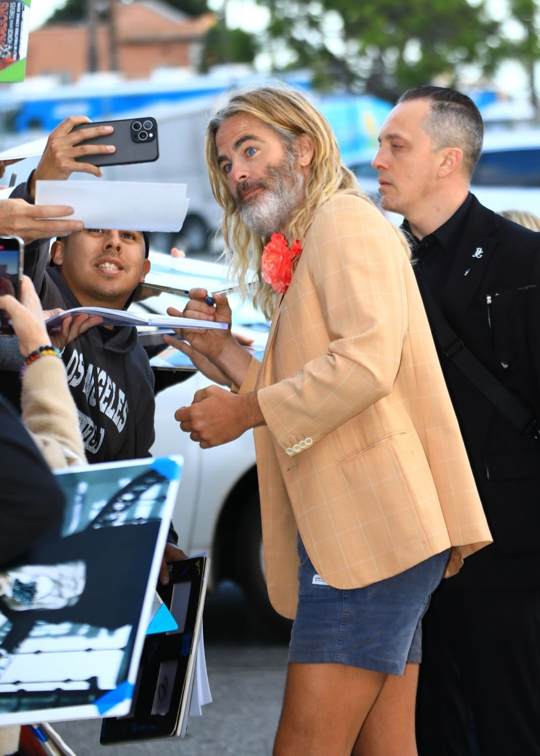 As for Chris and his shorts and those cheesy sunglasses and the flower on his jacket – that would actually work for the Met Gala, lol. It’s a secret garden theme this year so, technically, he could show up like this on Anna Wintour’s famed red carpet and he wouldn’t be wrong, while raising awareness about his movie, although his attendance is unlikely. I don’t think Chris Pine has been to the Met Gala in over a decade. But the Poolman should go to the Met Gala, don’t you want to see it?