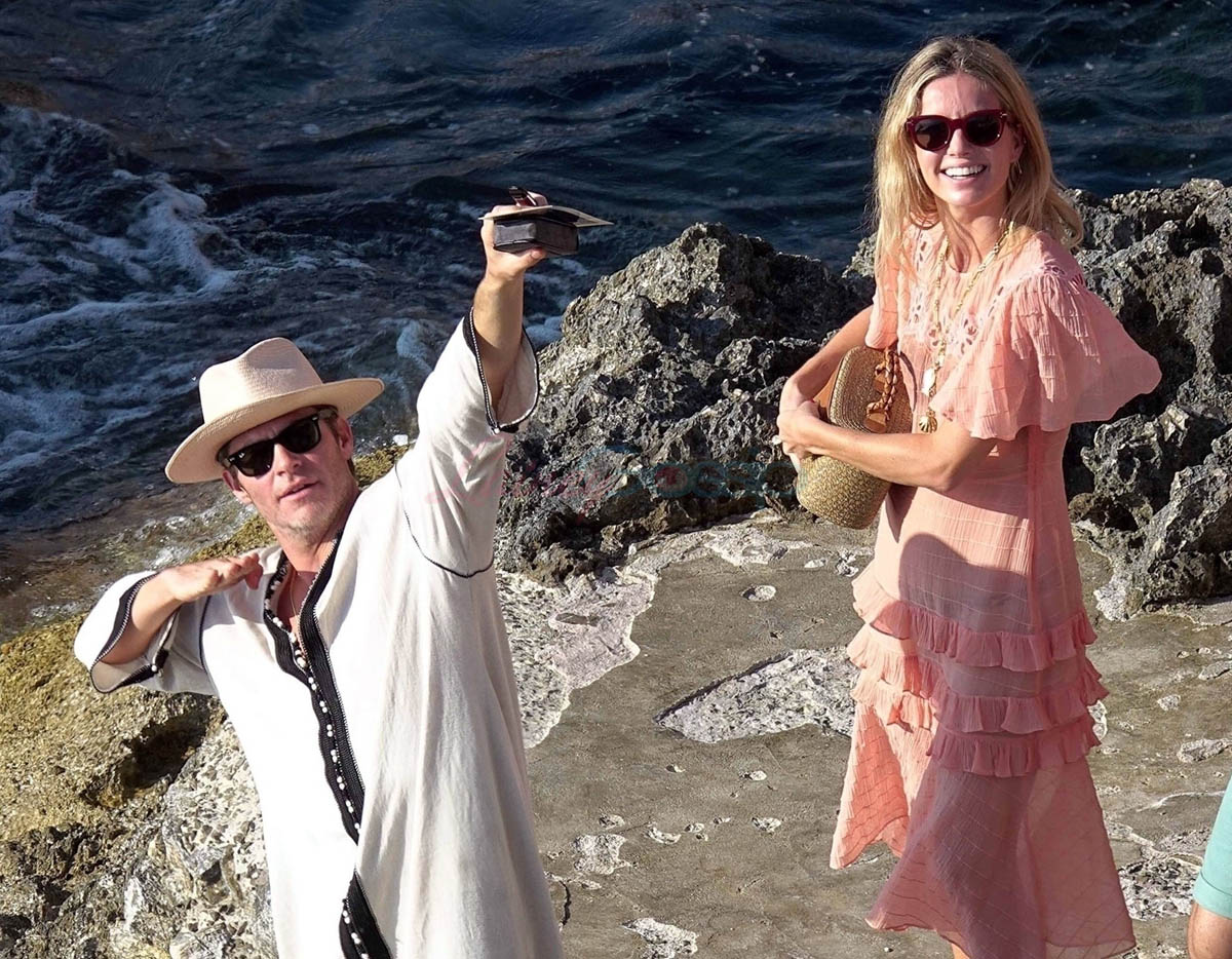 Quirky Chris is back. Chris Pine and Annabelle Wallis were in Capri, Italy on Sunday. There are shirtless pictures that add to the running list of reasons why he’s The Best Chris but I want to focus on Chris living his best life in Capri in a caftan like he’s Meryl Streep in The Post.