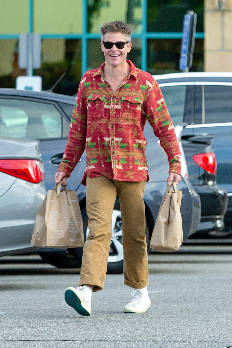 I appreciate the relationship status updates that we’re getting from the stars during the time of Coronavirus. LA is now on lockdown but before the announcement yesterday, Chris Pine and Annabelle Wallis stepped out to pick up some groceries. As you can see, Chris’s social distancing wardrobe is… excellent. Almost an homage to Jeff Bridges. And please note, they are not panic-buying, walking out of there with three bags between them so they should be good for, say, a week, and then they can go out and get more because supermarkets are an essential service and if everyone just gets what they need there should be enough for everyone! Please! STOP THE HOARDING!