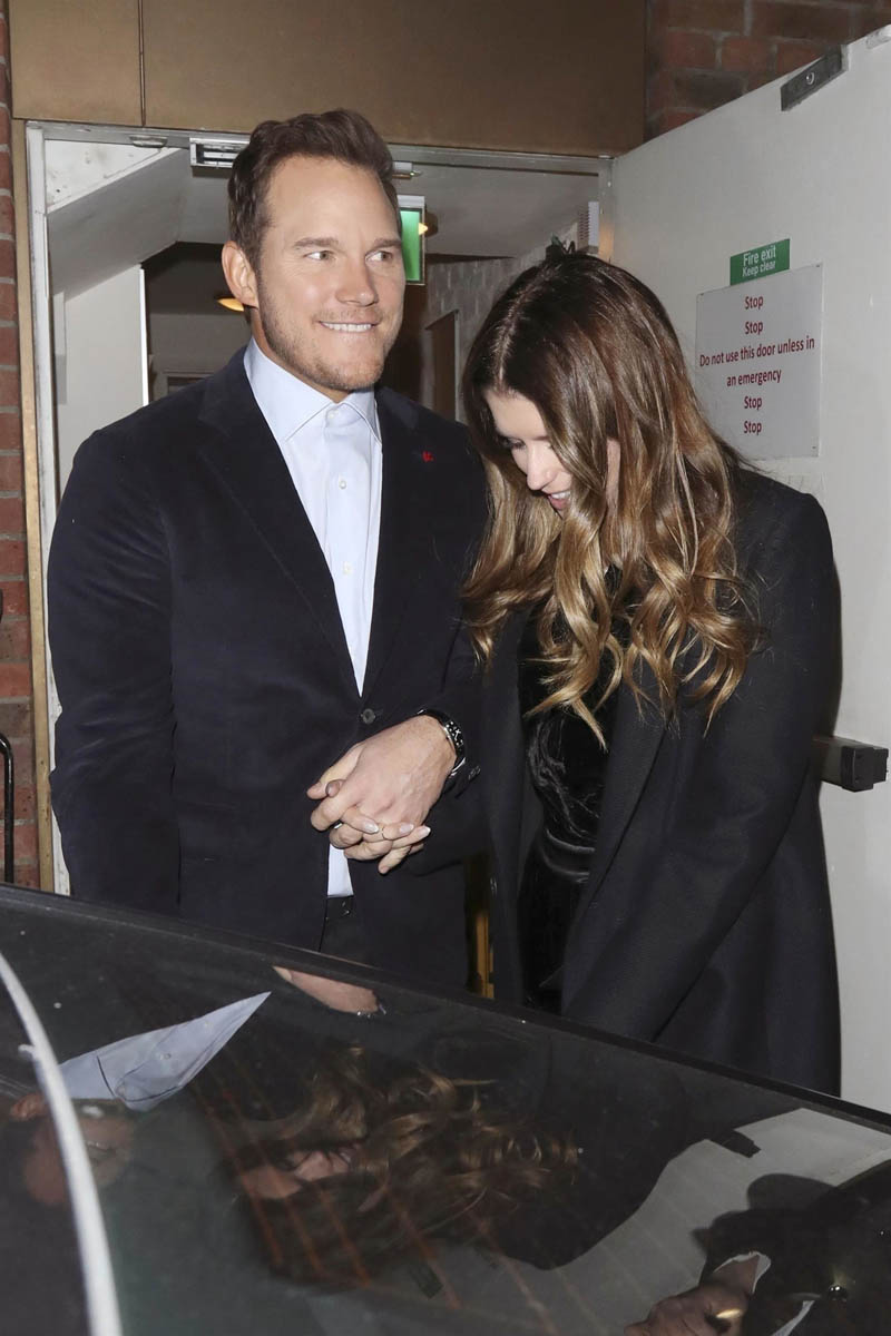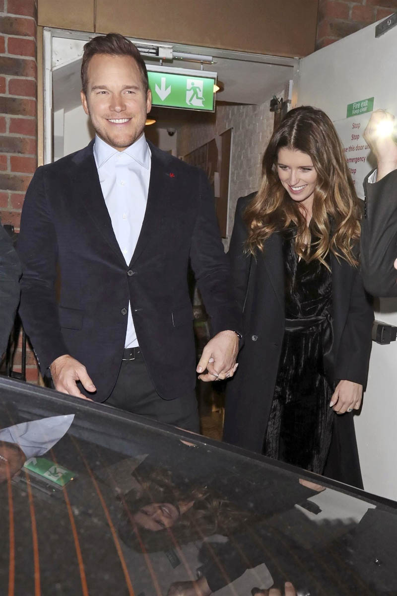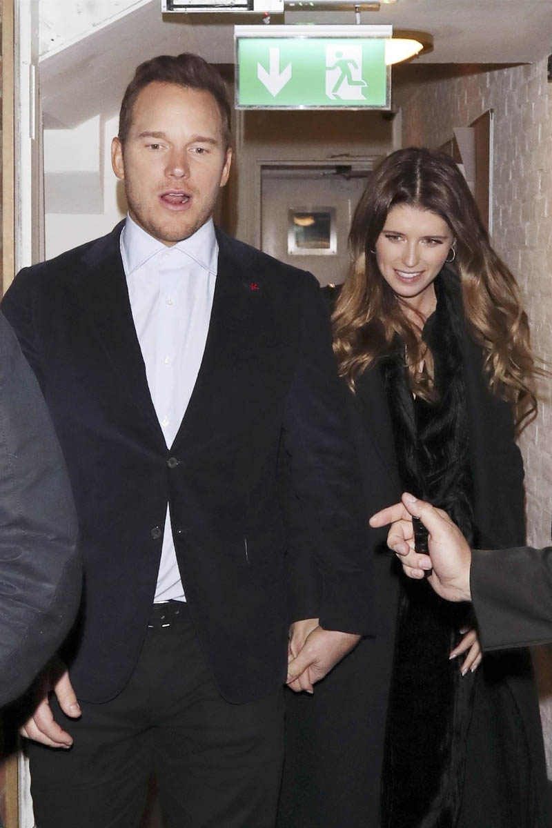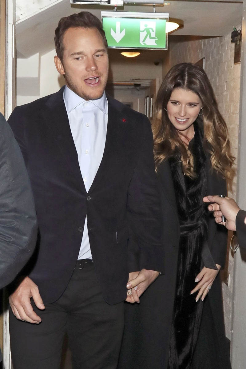 Chris Pratt has been in London this week on the Lego Movie 2 press tour. Katherine Schwarzenegger is with him. Like an engagement tour. Not officially, obviously, but it’s not uncommon now, for celebrities to go unofficially on tour after they get engaged. Remember when Tom Cruise and Katie Holmes got engaged? It felt like we were actually there for the proposal. I remember it like it happened to me. Eiffel Tower, right? It was also during promotion for a movie. Same thing happened with Johnny Depp and Amber Heard when they got engaged, I called it an engagement tour then too. And I said the same thing last summer with Justin Bieber and Hailey Baldwin. Now it’s Chris Pratt’s turn.