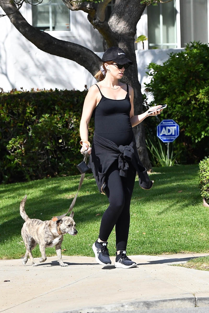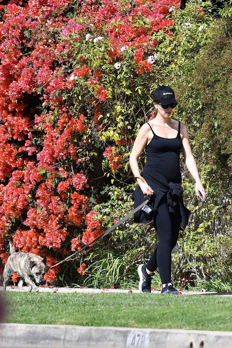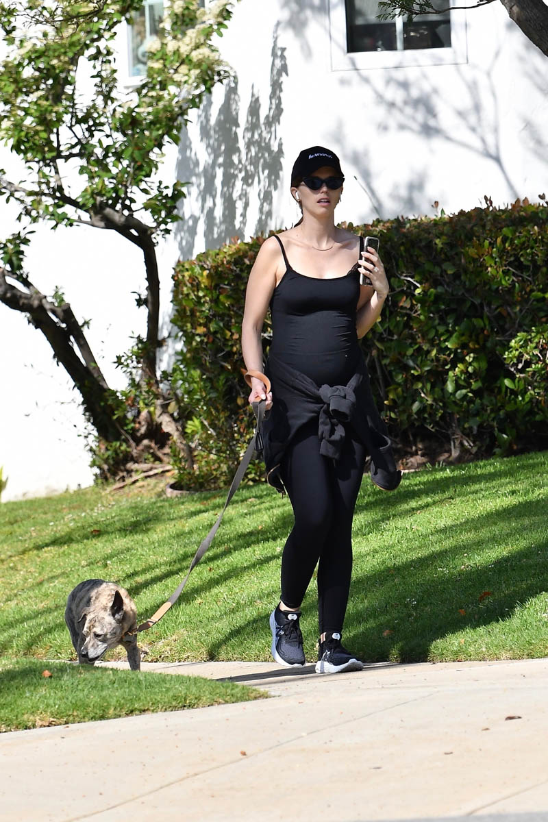Here's Katherine out for a walk with her dog on the weekend in LA.