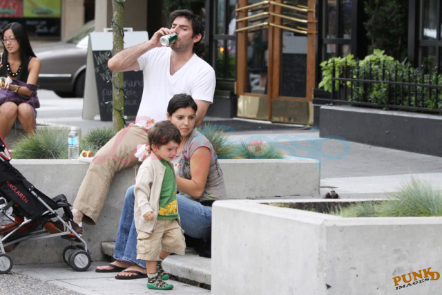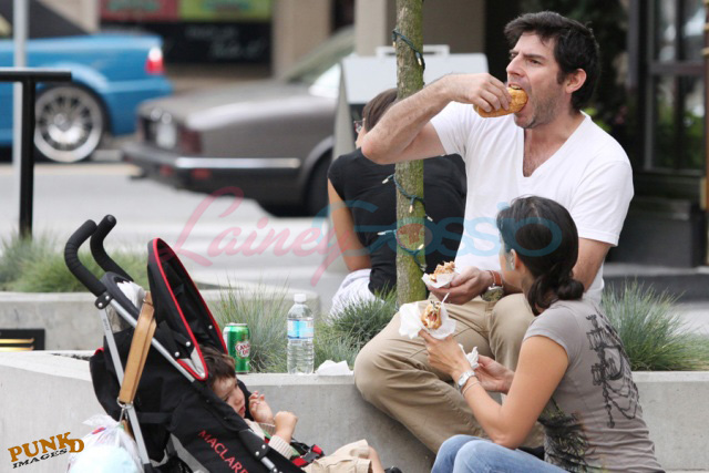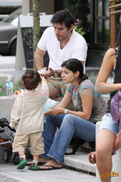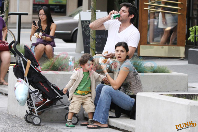 Twilight cast and crew were over Vancouver yesterday (Thursday) – Dakota Fanning arrived and did some shopping downtown and her onscreen vampire bff and local BC boy Cameron Bright was also spotted heading out of a White Spot. Triple O! New Moon director Chris Weitz spent time with his beautiful wife (now that is a gorgeous face), a family outing, enjoying the world famous Vancouver Japa Dog in the afternoon.