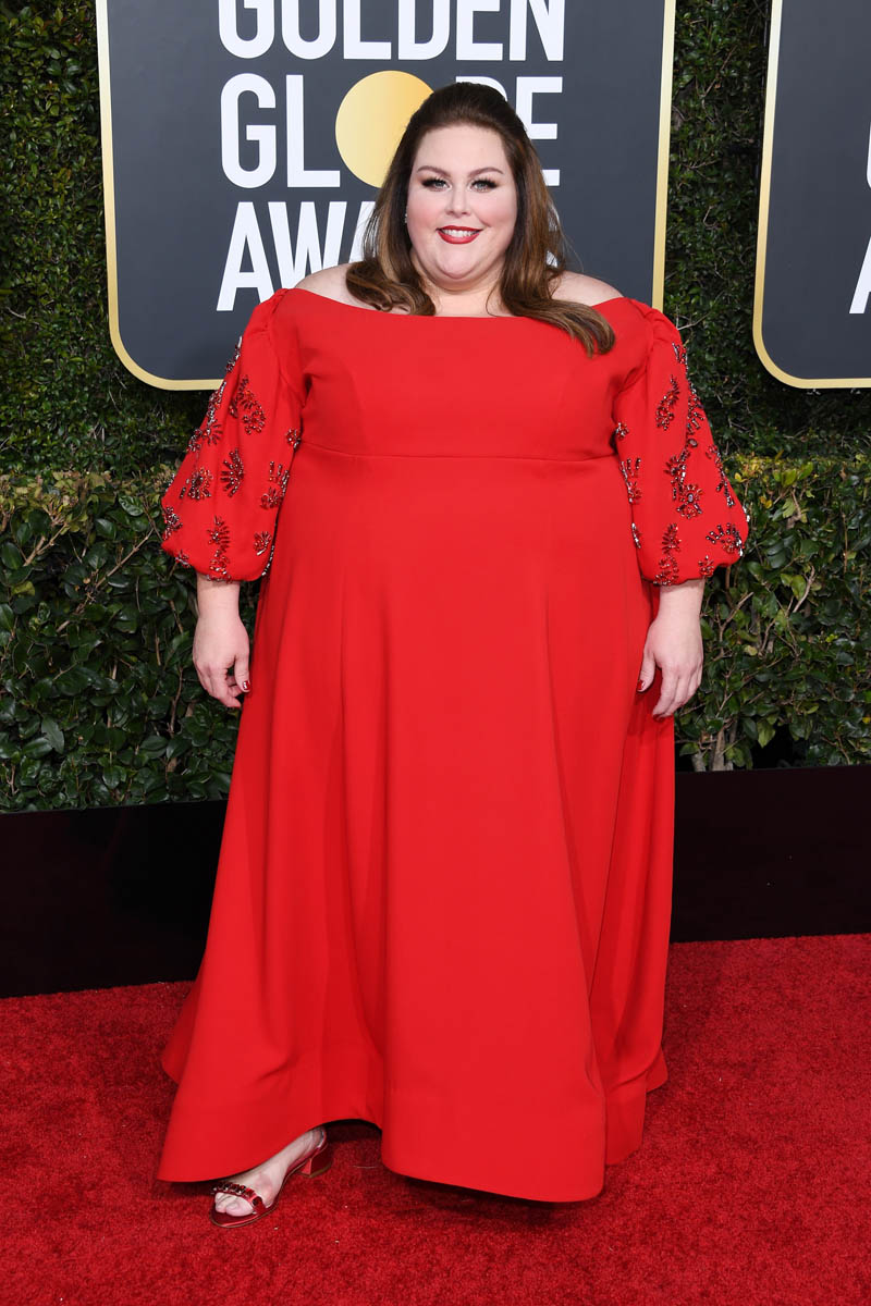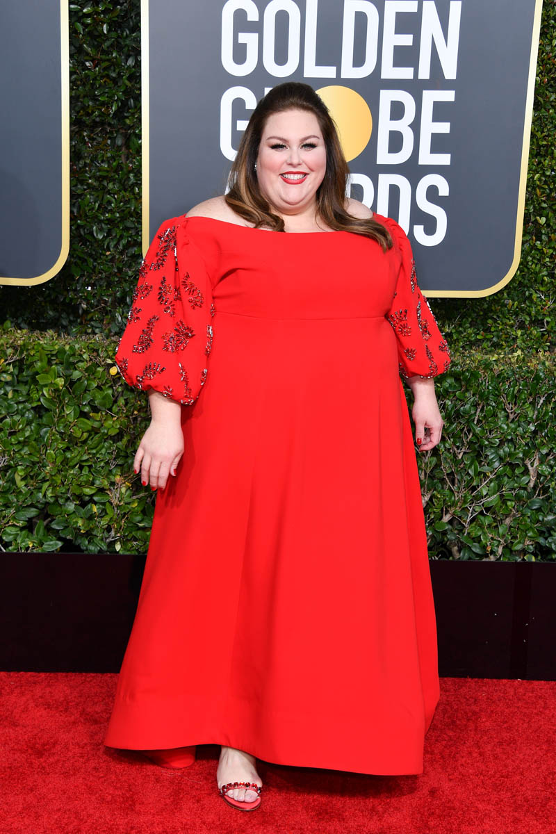 Point the First: Chrissy Metz has the mic two inches from her mouth, as she should on the carpet. She works on a TV show all day every day where she’s live-miced. On TV sets, actors have to get special permission to go to the bathroom while shooting, because one of the first things you learn is to turn off your mic, or your walkie, so the whole studio doesn’t hear you pee… or worse. Which has happened…
