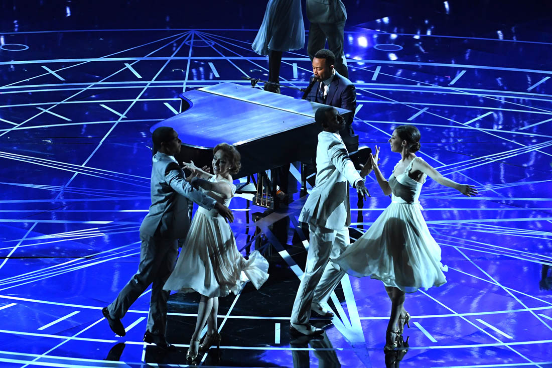 But today it was really supposed to be about John, and his performance, and the fact that as an executive producer, he has as much ownership over La La Land as Ryan or Emma or director Chazelle. And he sold the hell out of the songs in the mash up performance, of course, but one thing became clear—when you have John Legend, who is a verifiable hit machine, performing his heart out on these songs, those are optimal conditions, and so you have to kind of face the truth: