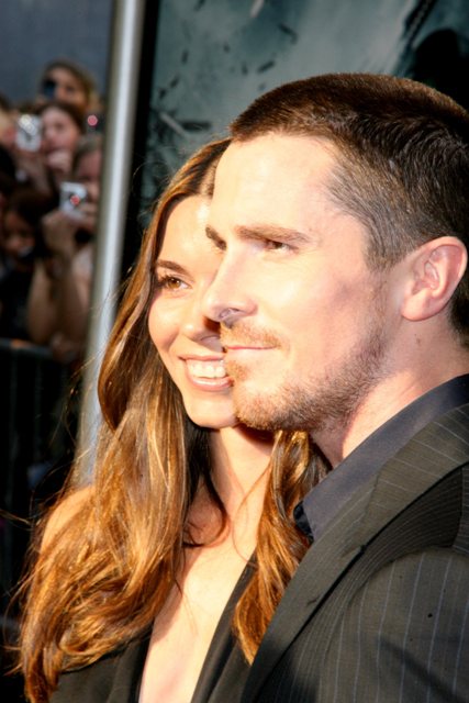 Christian Bale and his wife Sibi last night at the premiere – look at him touching his lips. Touch my lips too!