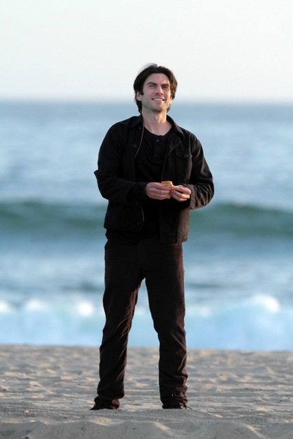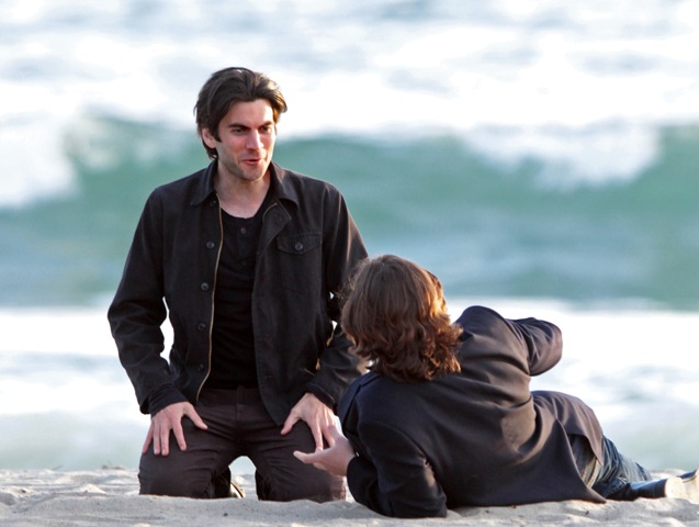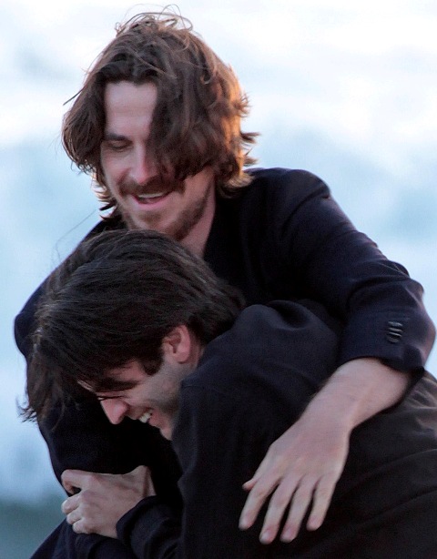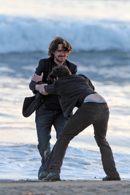You’ve seen The Hunger Games, right? How great was it to see Wes Bentley, back, healthy, and happy? Hot, right? And how great is it to see Wes Bentley messing around on the beach on location in Santa Monica with Christian Bale?