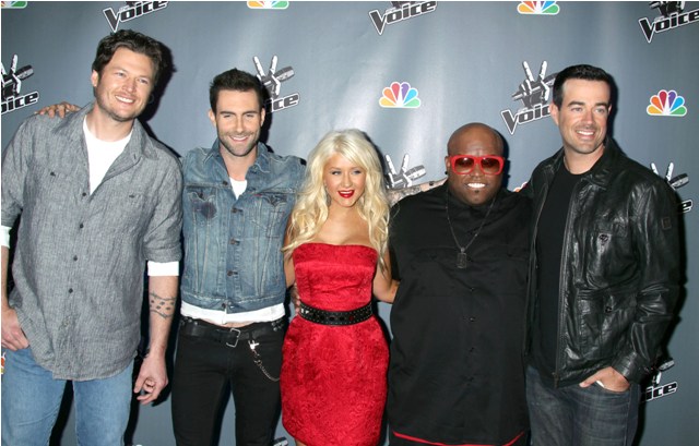 Anyway, the other judges on The Voice are Blake Shelton, Cee-Lo, and, ugh, Adam Levine. The concept of the show comes from Holland. It sounds kinda complicated but basically it’s a singing competition and the judges sit in these spaceship style chairs with their backs turned so they can’t see the contestants but if they like what they hear they press a button and turn around. And that’s supposed to be the “aaaaah” moment for the audience.