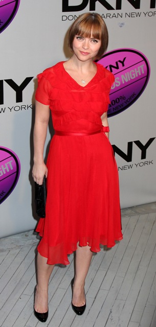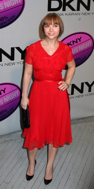 Body looks great, bangs look great, massive forehead brilliantly concealed, Christina simply glowed last night in NY at the DKNY event. Maybe she’s finally rid of that cheesedick of a boyfriend?