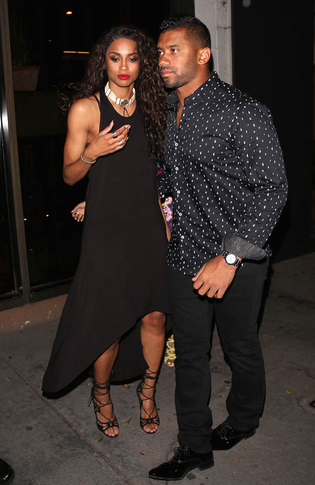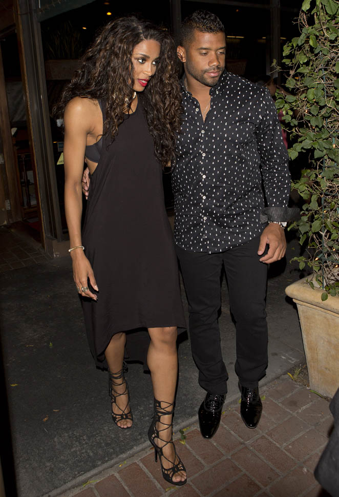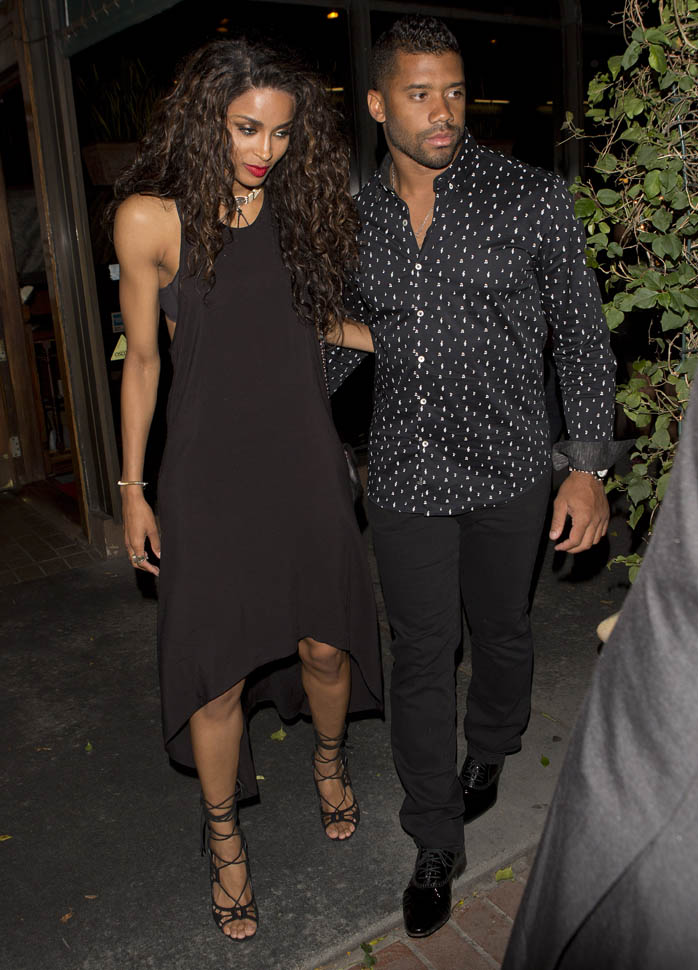 After presenting at the BET Awards, and sitting front row during the show, dancing and singing along adorably because Taylor Swift wasn’t dominating the camera time, Kelly and her husband went out for dinner with La La and Carmelo Anthony and Ciara and Russell Wilson. Now this is an upgrade. Ciara, you’ll recall, was with Future but cut him off when she found out he cheated on her 3 months after she had his baby – click here for a refresher. Six months later she’s just come off the release of a new album, a new tour, she’s on stage at the BET Awards during the highlight of the night, and dating one of the top quarterbacks in the NFL who’s looking to sign a new monster contract. Also…THOSE ARMS.