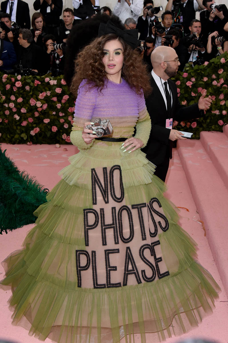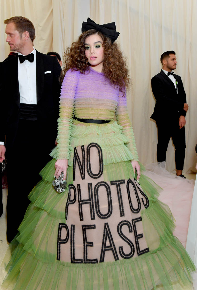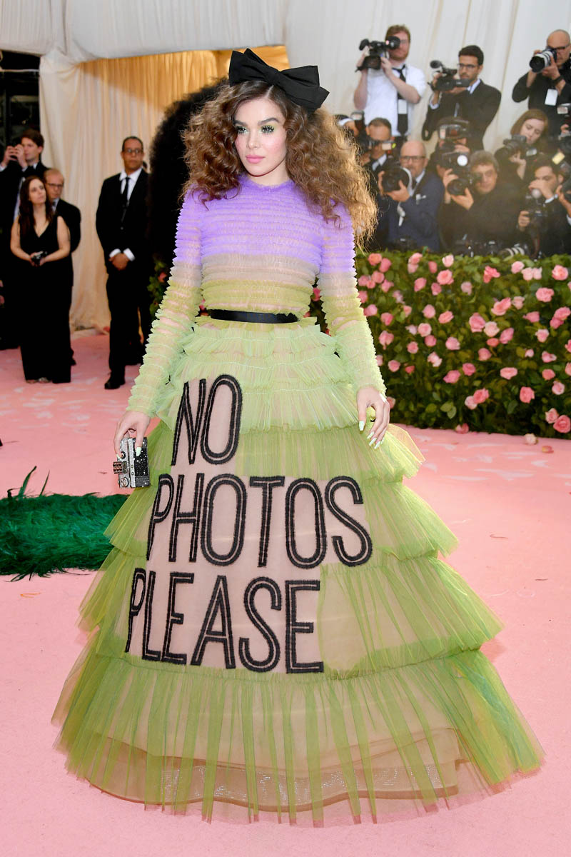 Hailee Steinfeld is punching above her weight class here. She kind of always has, but this is the best. It’s Victor & Rolf, a little-girl ball dress and the biggest little-girl hair bow, and a BIG ASS message saying ‘NO PICTURES’. At the most photograph-heavy event of the year, pretty much (okay fine the Oscars but they also have the actual televised element, so).